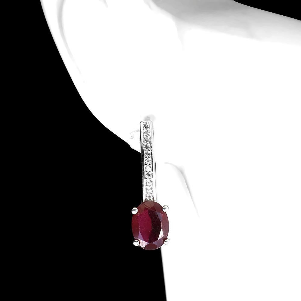 Heated Oval Red Ruby 8x6mm White Topaz 14 k White Gold Plated 925 Sterling Silver Earrings