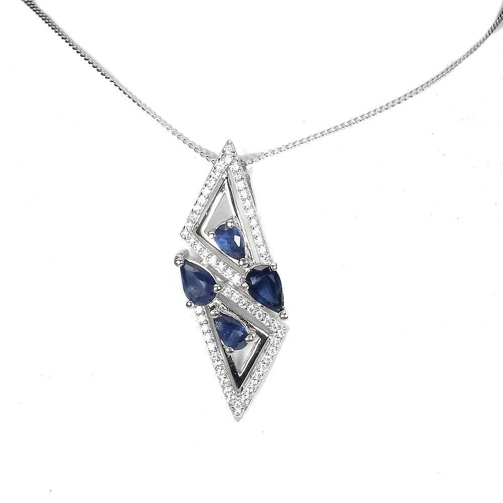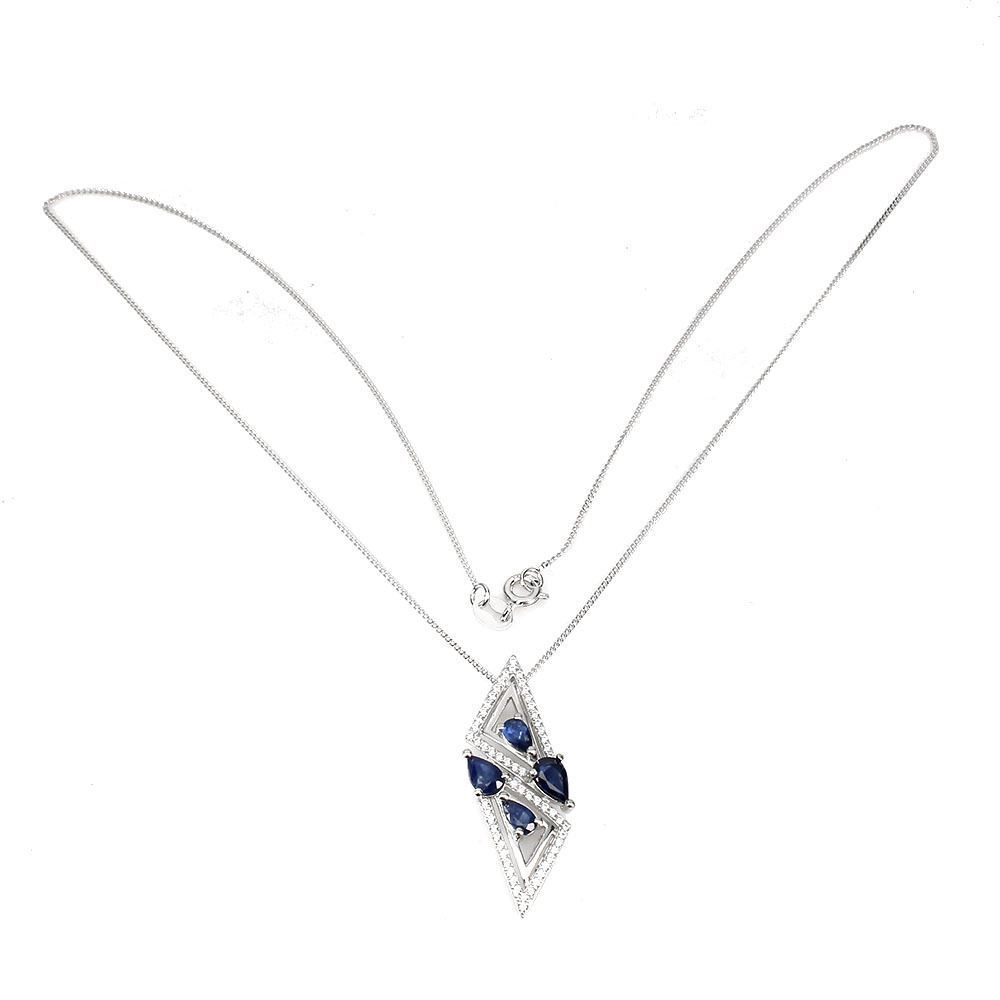 Heated Pear Blue Sapphire Kanchanaburi Cz 14k White Gold Plated 925 Sterling Silver Necklace