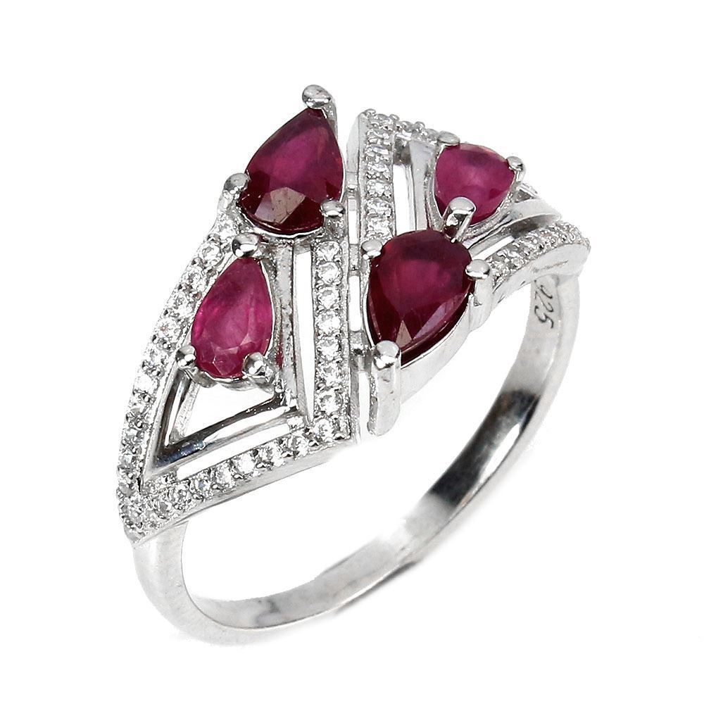 Heated Pear Red Ruby 6x4mm Cz 14k White Gold Plated 925 Sterling Silver Ring Size 8