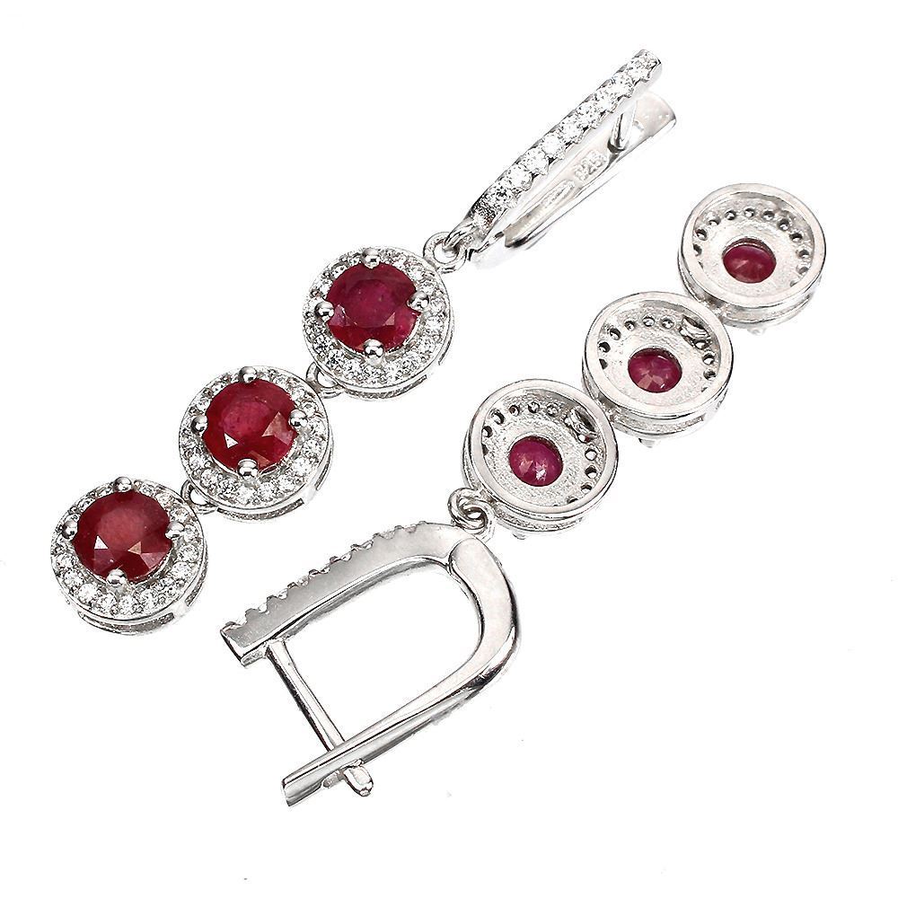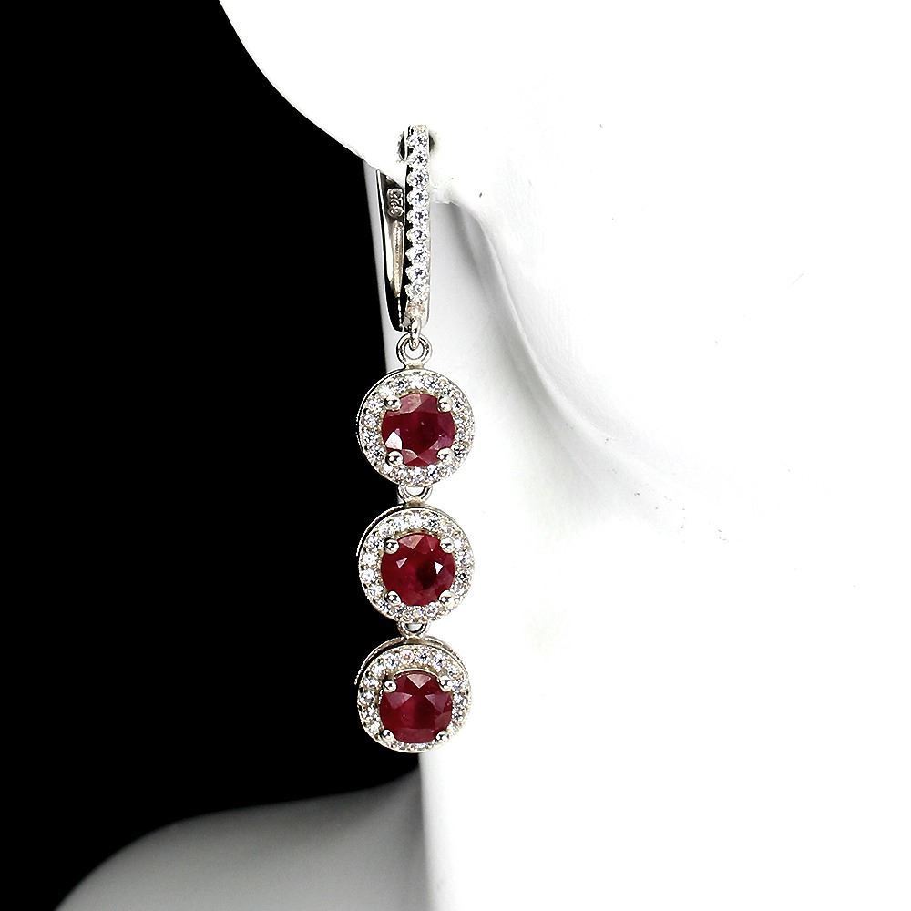 Heated Round Ruby 5mm Cz 14 k White Gold Plated 925 Sterling Silver Earrings