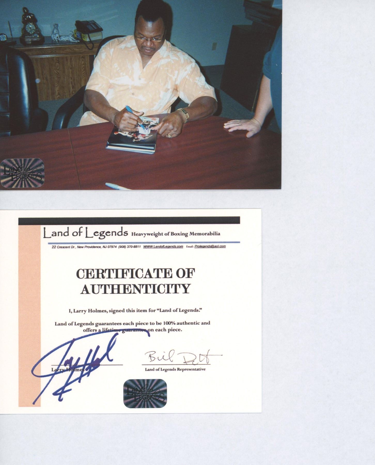 Larry Holmes signed certificate
