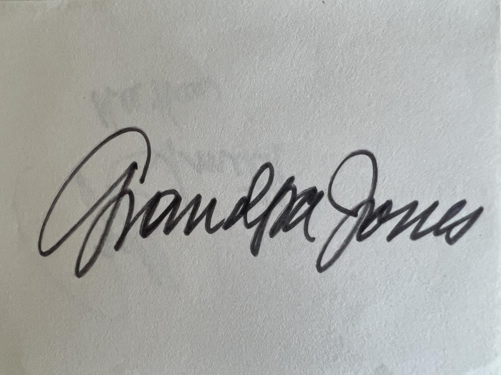 Hee Haw Grandpa Jones/ Jeff Smith original signatures. GFA authenticated. 3x4 inches