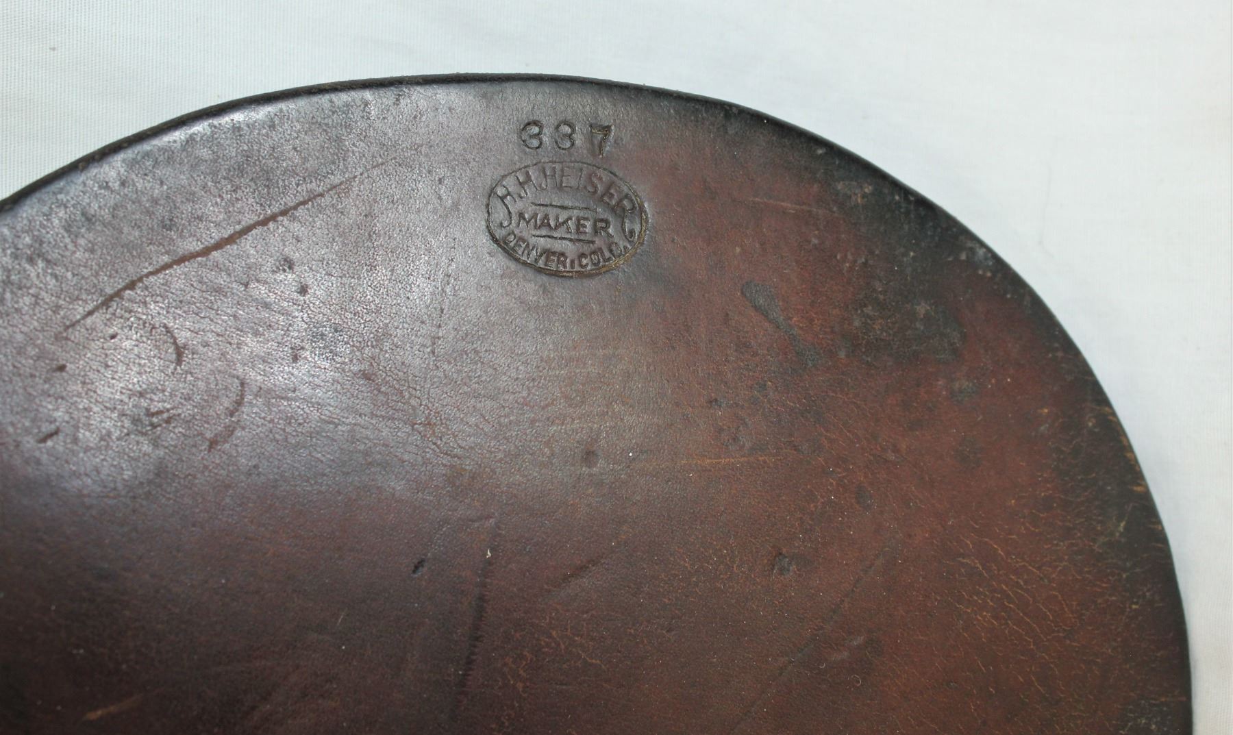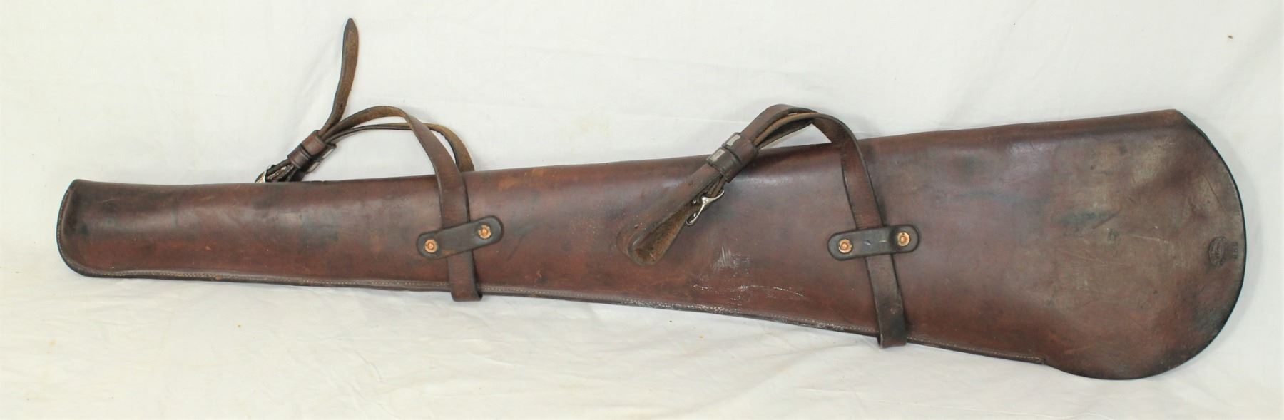 Light colored rifle scabbard in crisp condition, complete with its straps and bold maker mark.