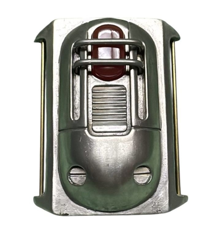 High end metal Hellboy belt locator from the Guillermo del Toro directed superhero film 'Hellboy' (2004), where a charismatic demon-turned-investigator named "Hellboy" works with the secretive Bureau of Paranormal Research and Defense to suppress paranormal threats, when a resurrected sorcerer seeks to make Hellboy fulfill his destiny by triggering the apocalypse.