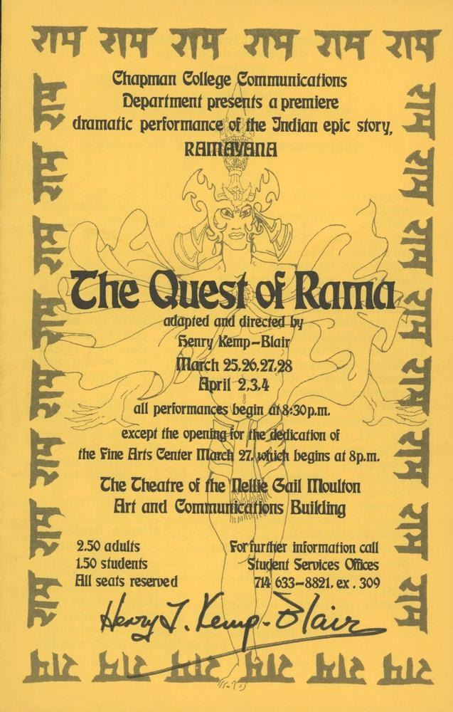 The Quest of Rama signed playbill autographed by Henry Kemp-Blair.