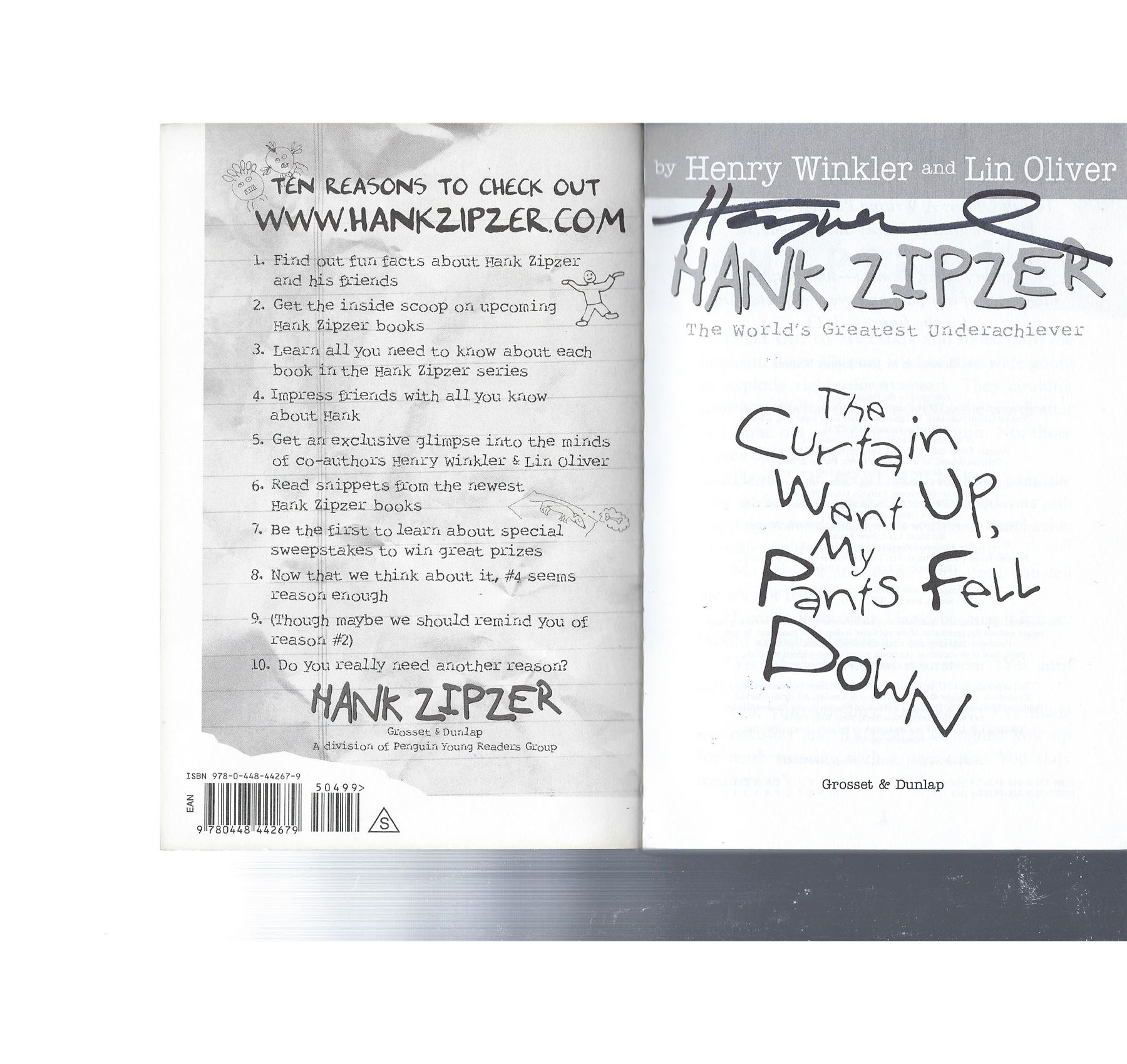 Hank Zipzer; The World's Greatest Underachieve: The Curtain Went Up, My Pants Went Down signed book autographed by Henry Winkler