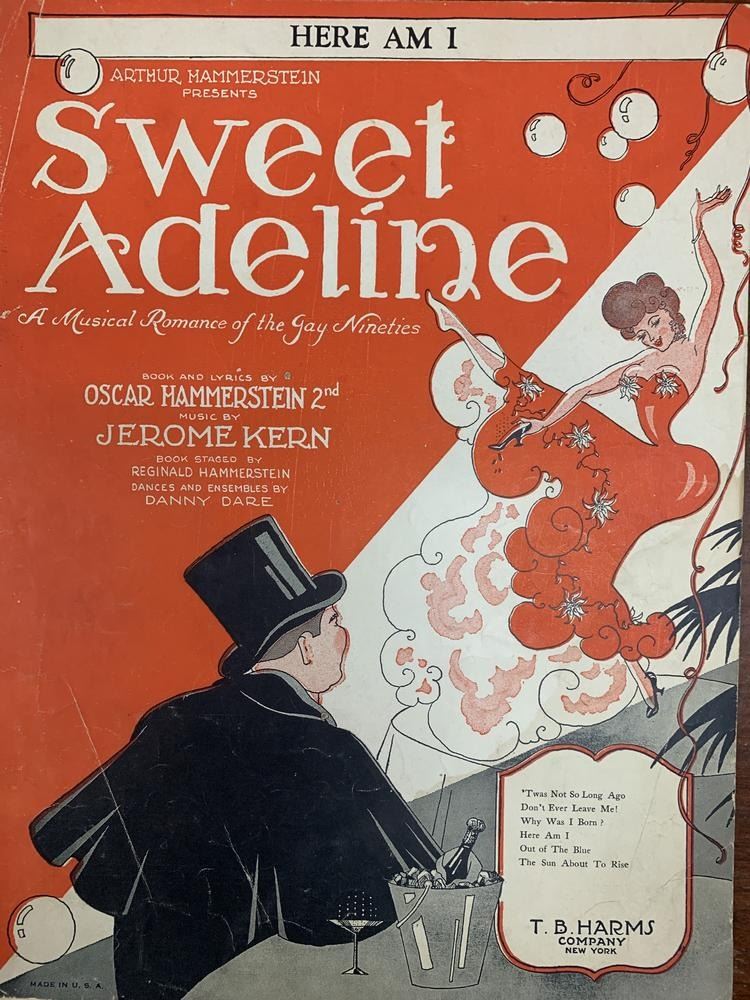 Here I Am Sweet Adeline unsigned sheet music. 9x12 inches