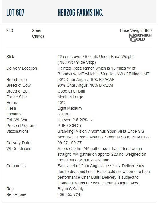 Herzog Farms Inc. - 240 Steers; Base Weight: 600