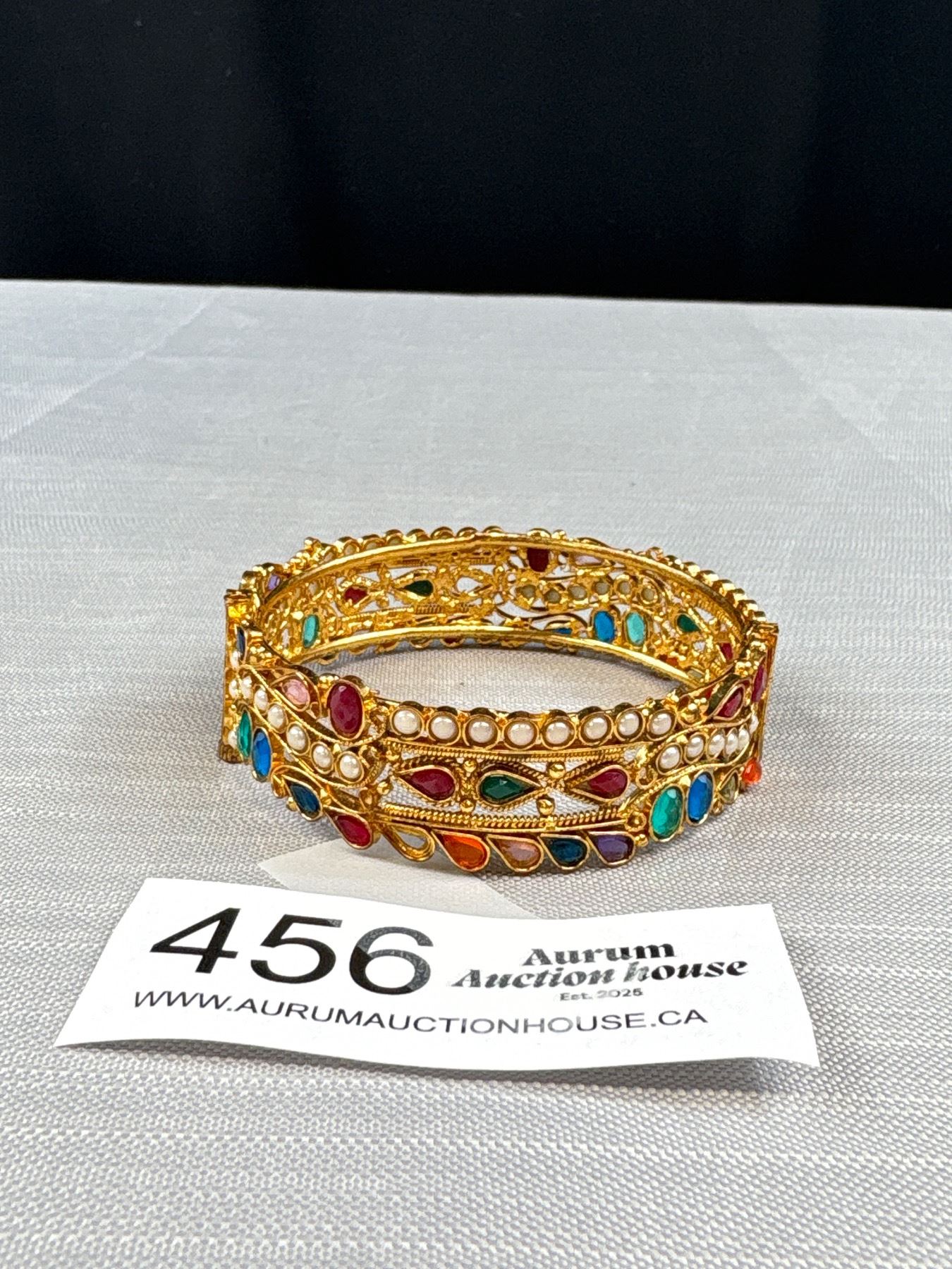 High Carat Gold w/ Stones Hinged Bangle