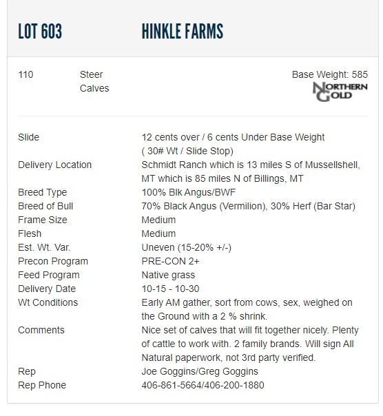 Hinkle Farms - 110 Steers; Base Weight: 585