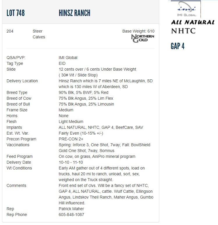 Hinsz Ranch - 204 Steers; Base Weight: 610