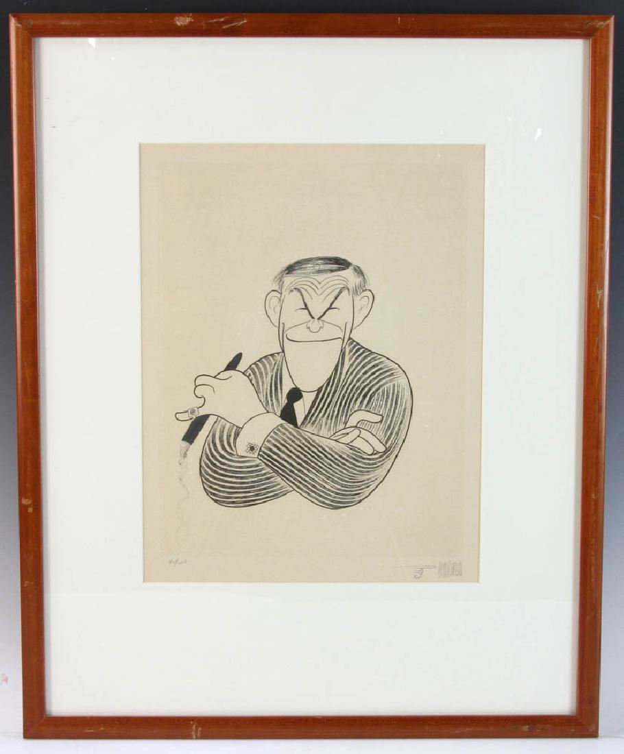 Hirschfeld, George Burns, print, edition 42/200, signed, framed 24" x 19". Provenance: Boyton Beach, Florida estate.
