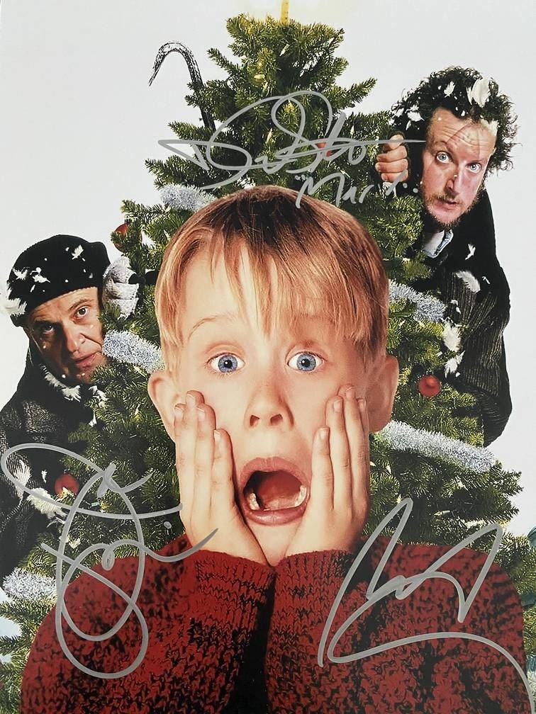 Home Alone cast signed movie photo autographed by Macaulay Culkin, Daniel Stern and Joe Pesci. 8x10 inches