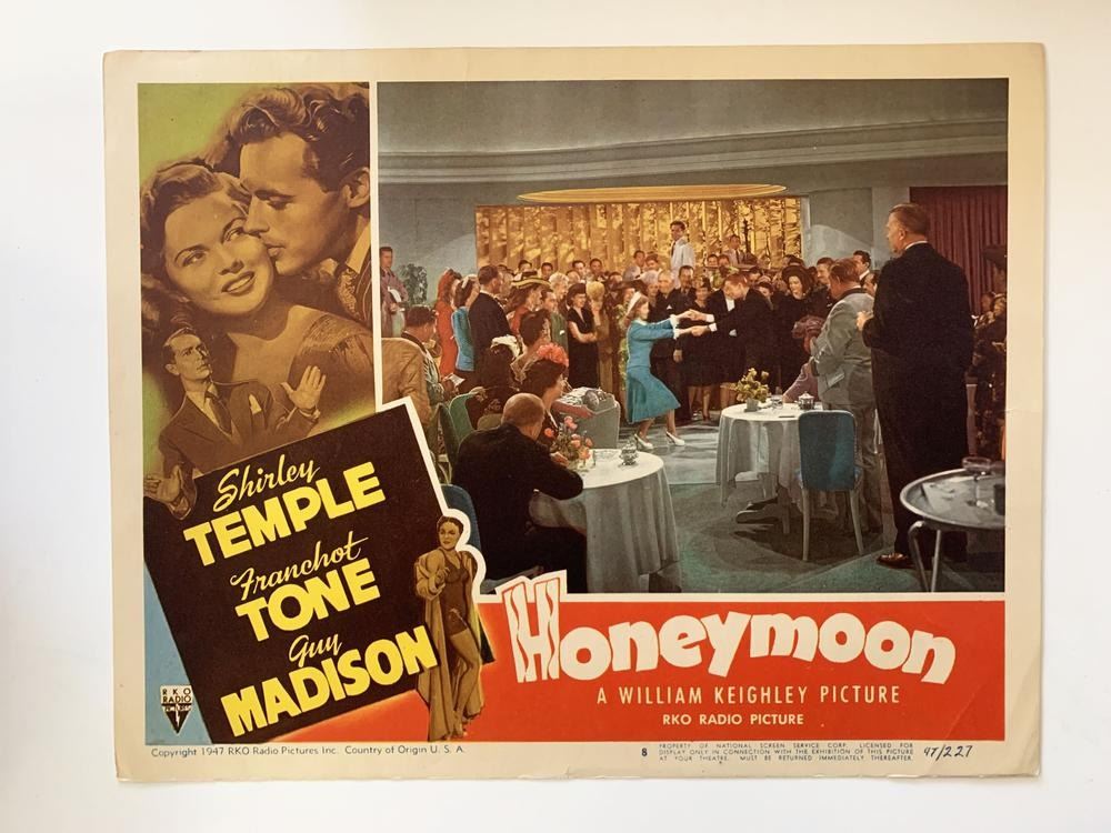 Honeymoon original 1947 vintage lobby card on heavy card stock. 11x14 inches