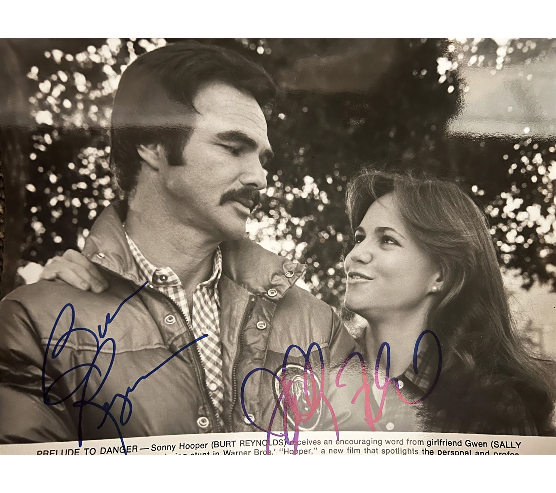 Hooper signed movie photo autographed by Burt Reynolds and Sally Field. 8x10 inches