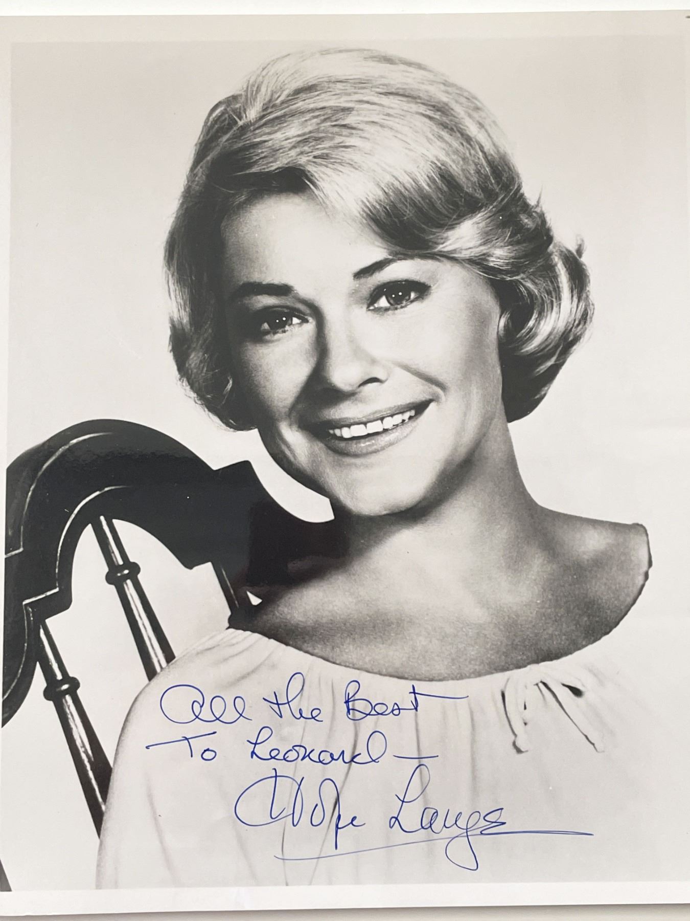 Hope Lange signed photo. 8x10 inches