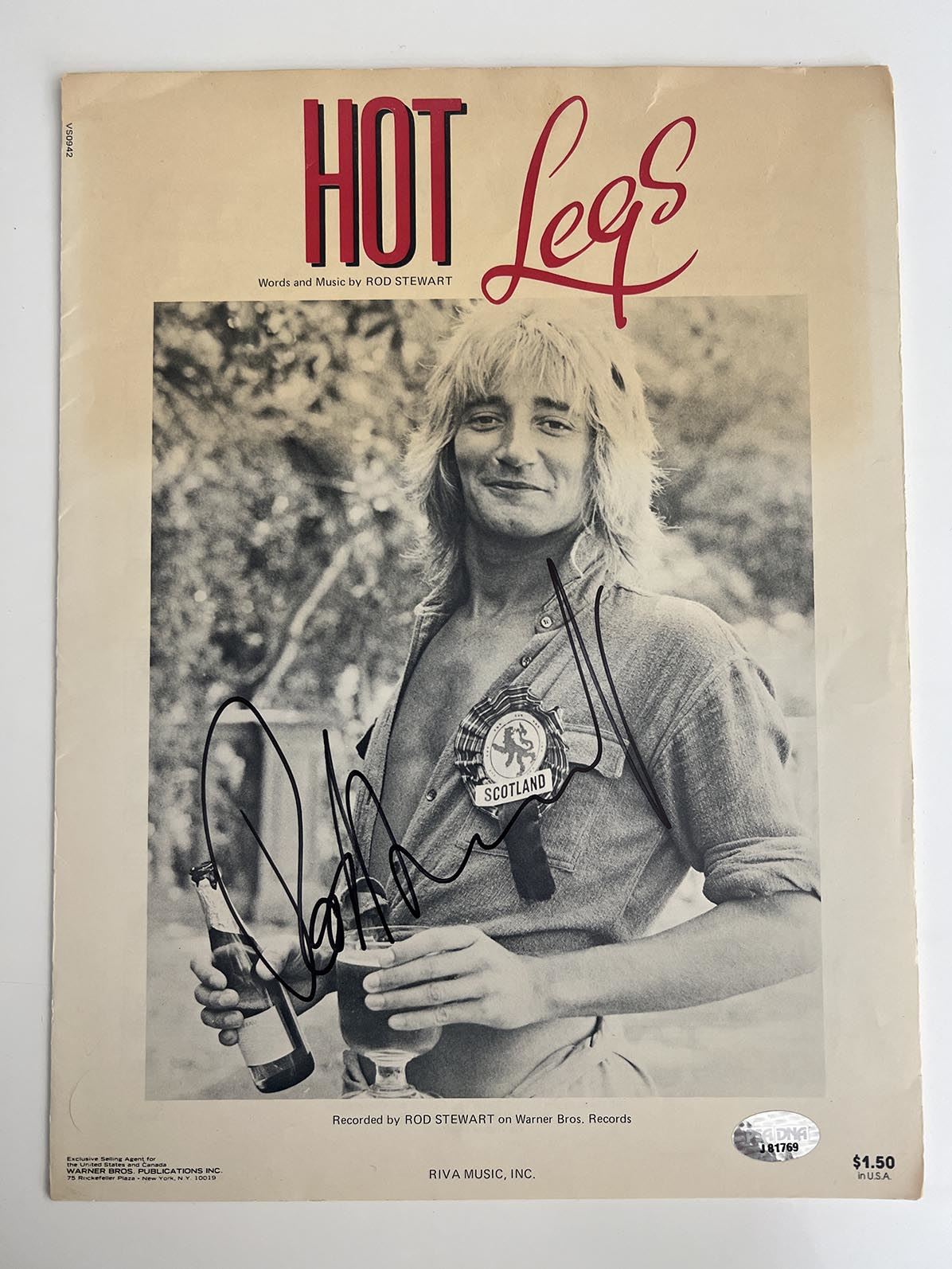 Hot Legs Rod Stewart signed music book. PSA/DNA authenticated .9x12 inches