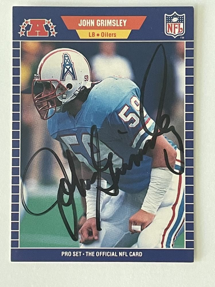 Houston Oilers John Grimsley 1989 NFL #144 signed trading card. 2x3 inches