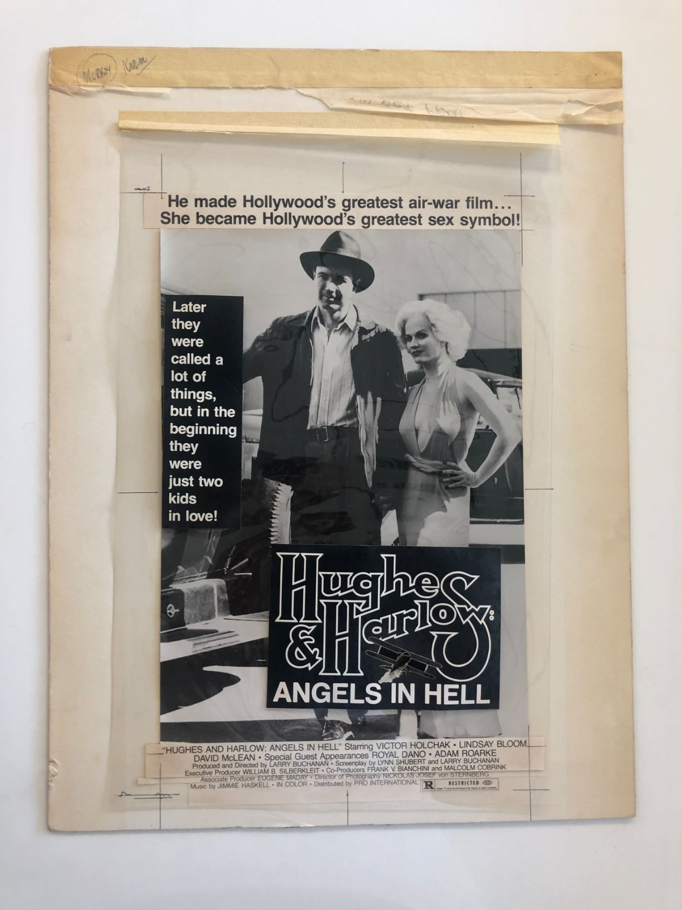 Original Vintage Advertising Paste Up for Hughes and Harlow: Angels in Hell Movie Poster. 21x15 inches