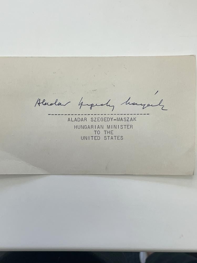 Hungarian Minister to the United States Aladar Szegedy-Maszak original signature.6x4 inches