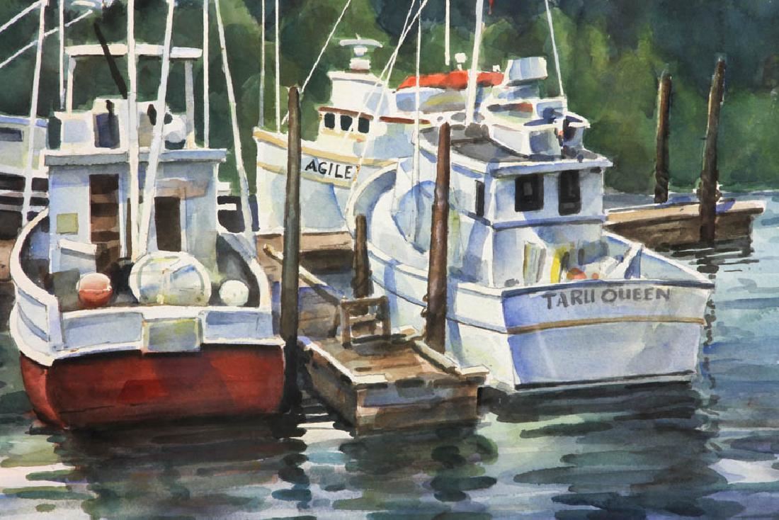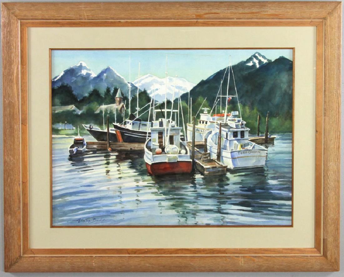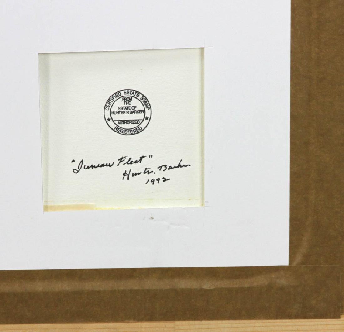 Hunter Barker, Juneau, Alaska fleet, watercolor, 22" x 29", framed 33" x 40". Provenance: Boca Raton, Florida collection.