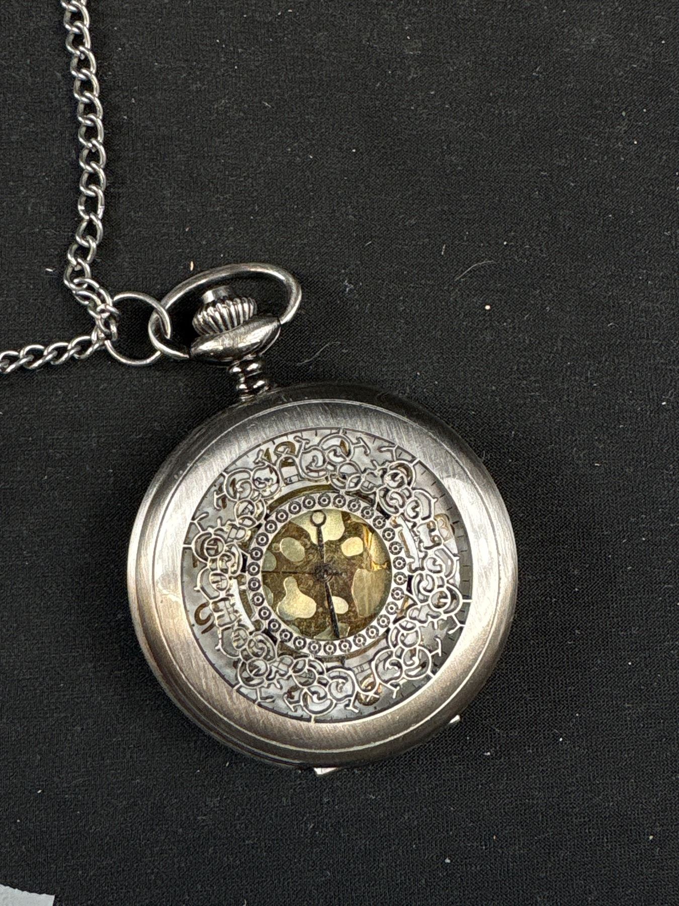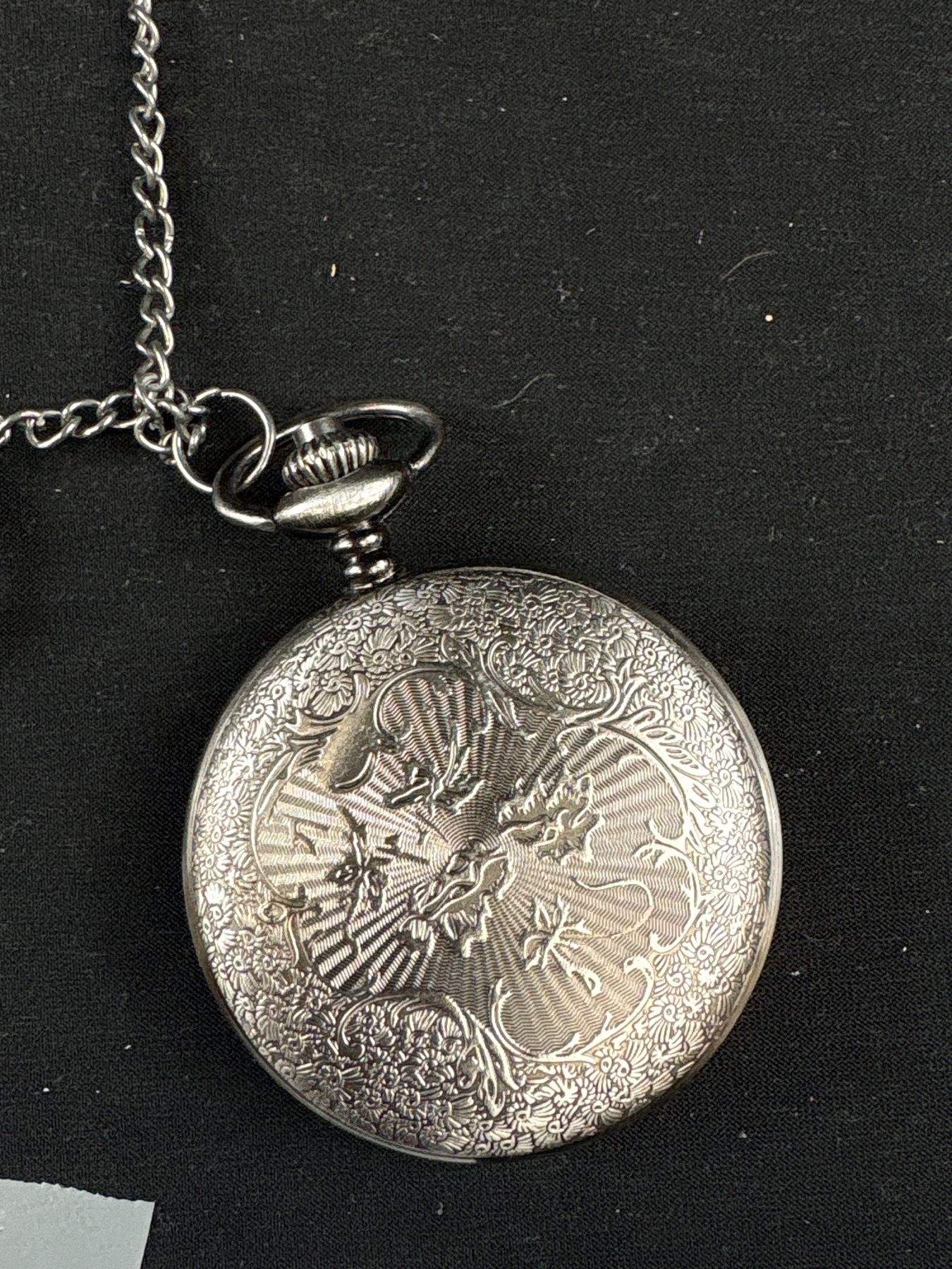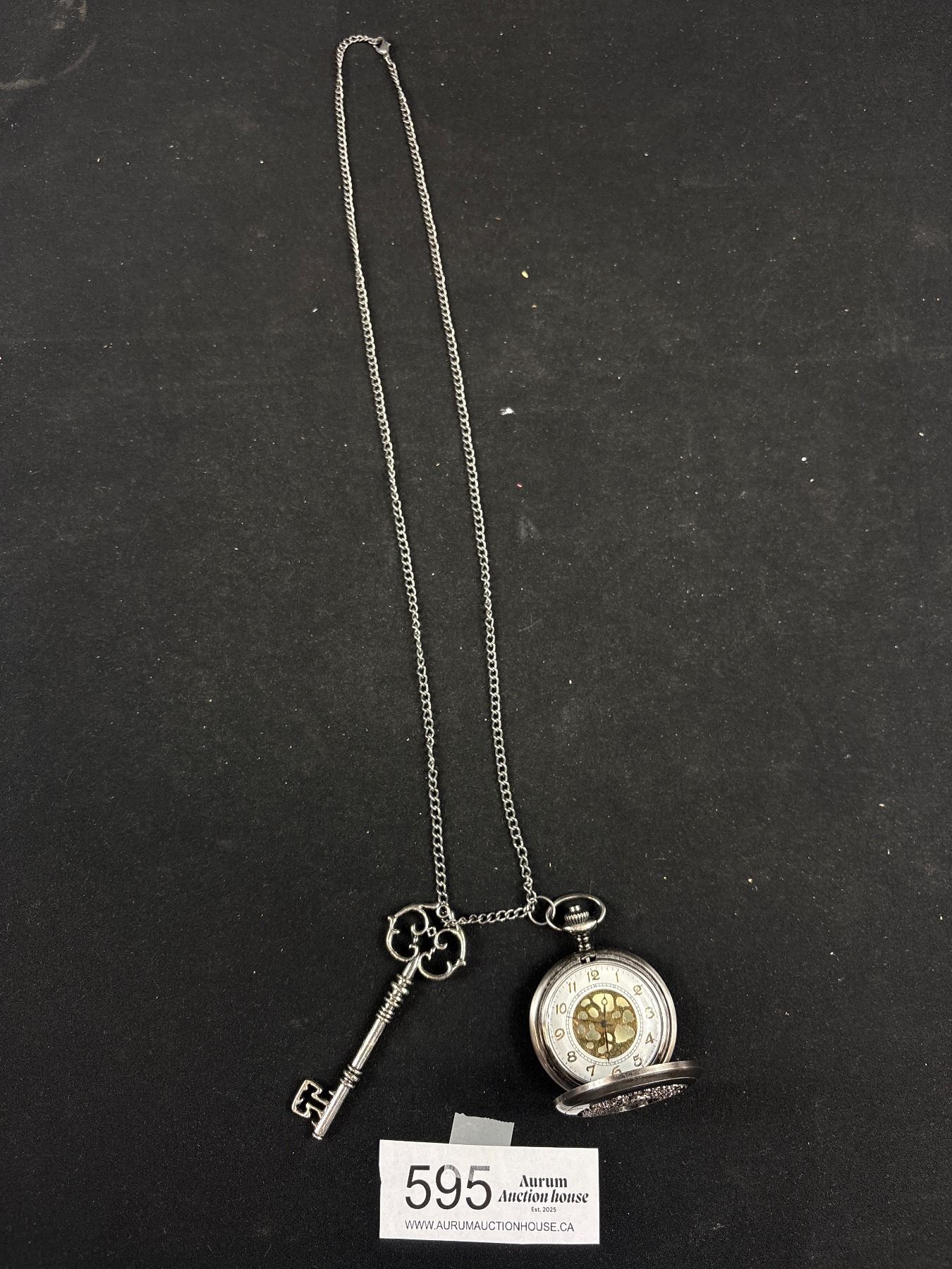 Hunter Case Quartz Pocket Watch w/ Chain + Key Pendant/Fob