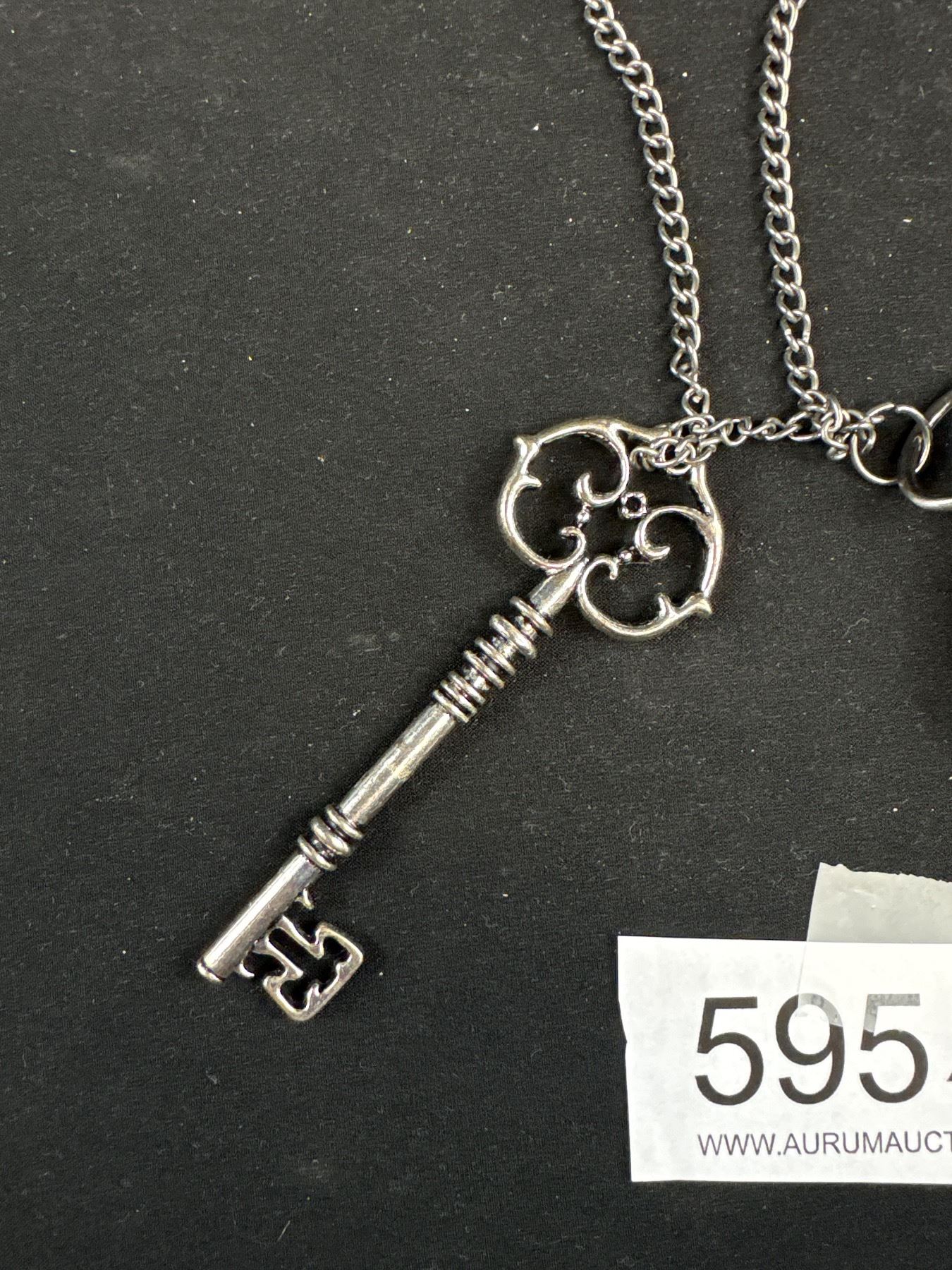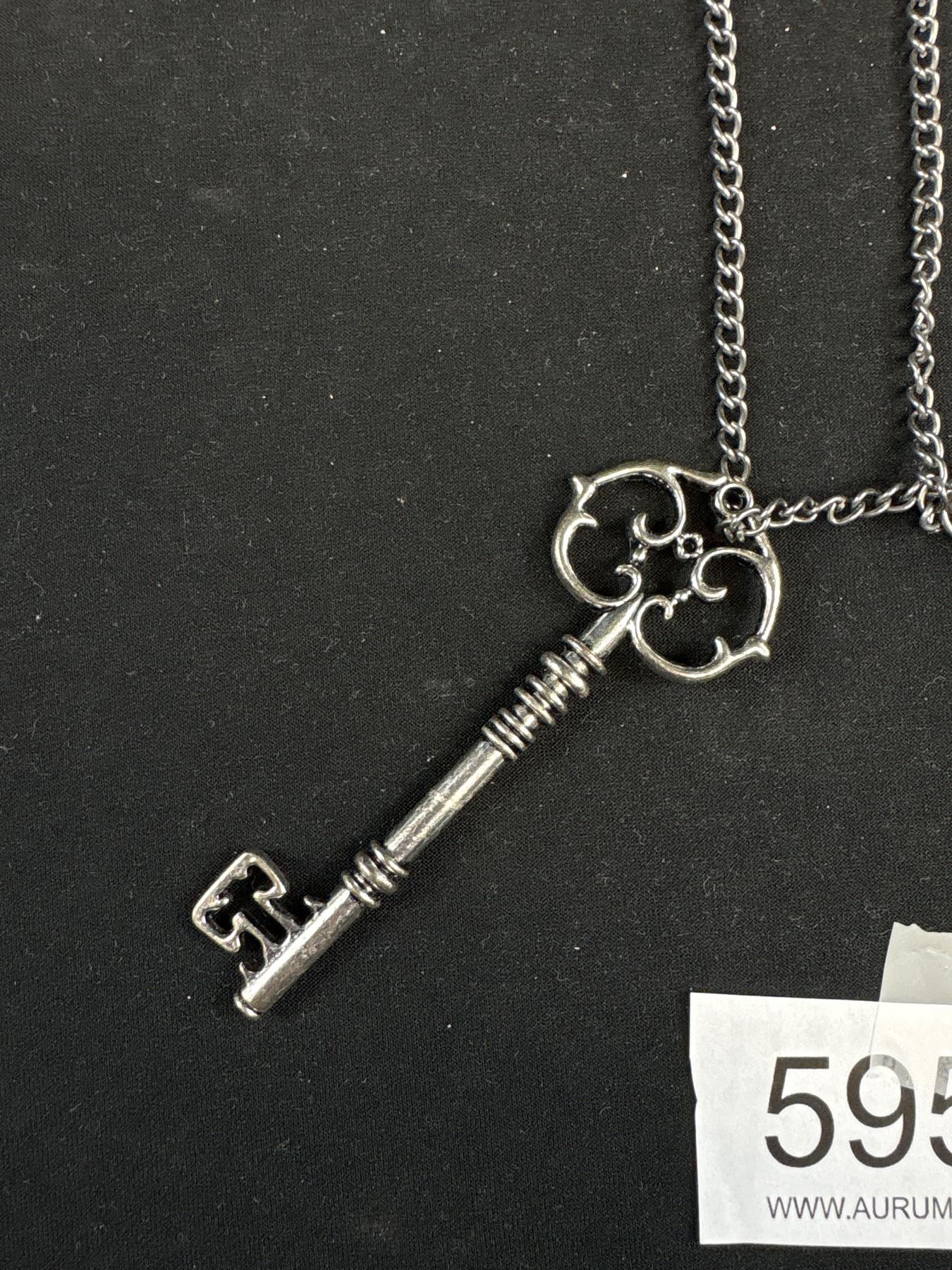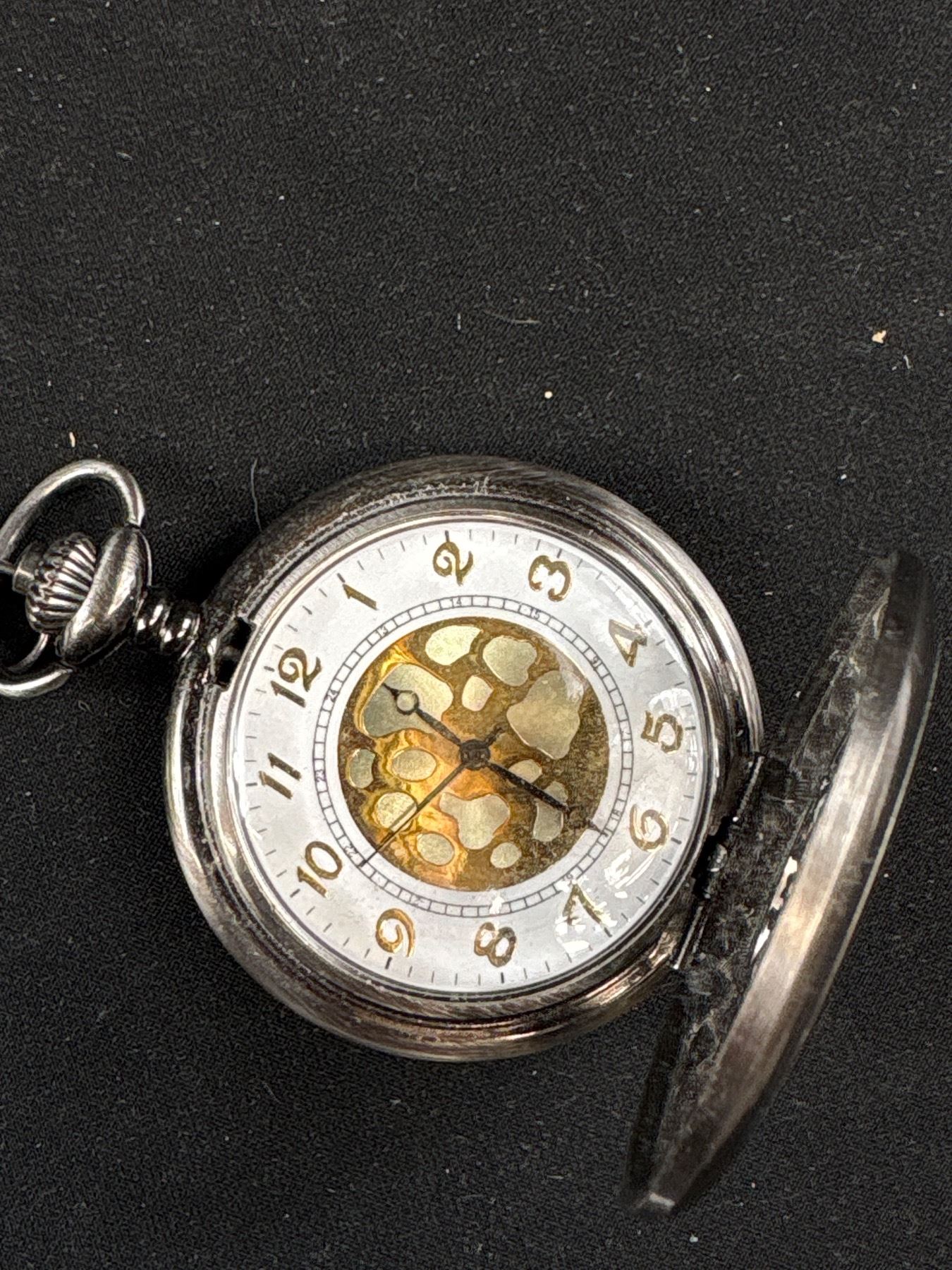 Hunter Case Quartz Pocket Watch w/ Chain + Key Pendant/Fob
