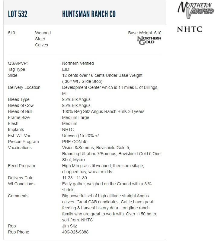 Huntsman Ranch Co - 510 Weaned Steers; Base Weight: 610