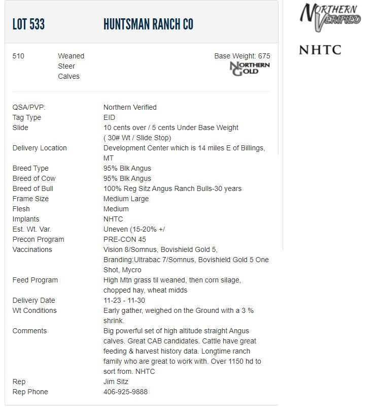 Huntsman Ranch Co - 510 Weaned Steers; Base Weight: 675
