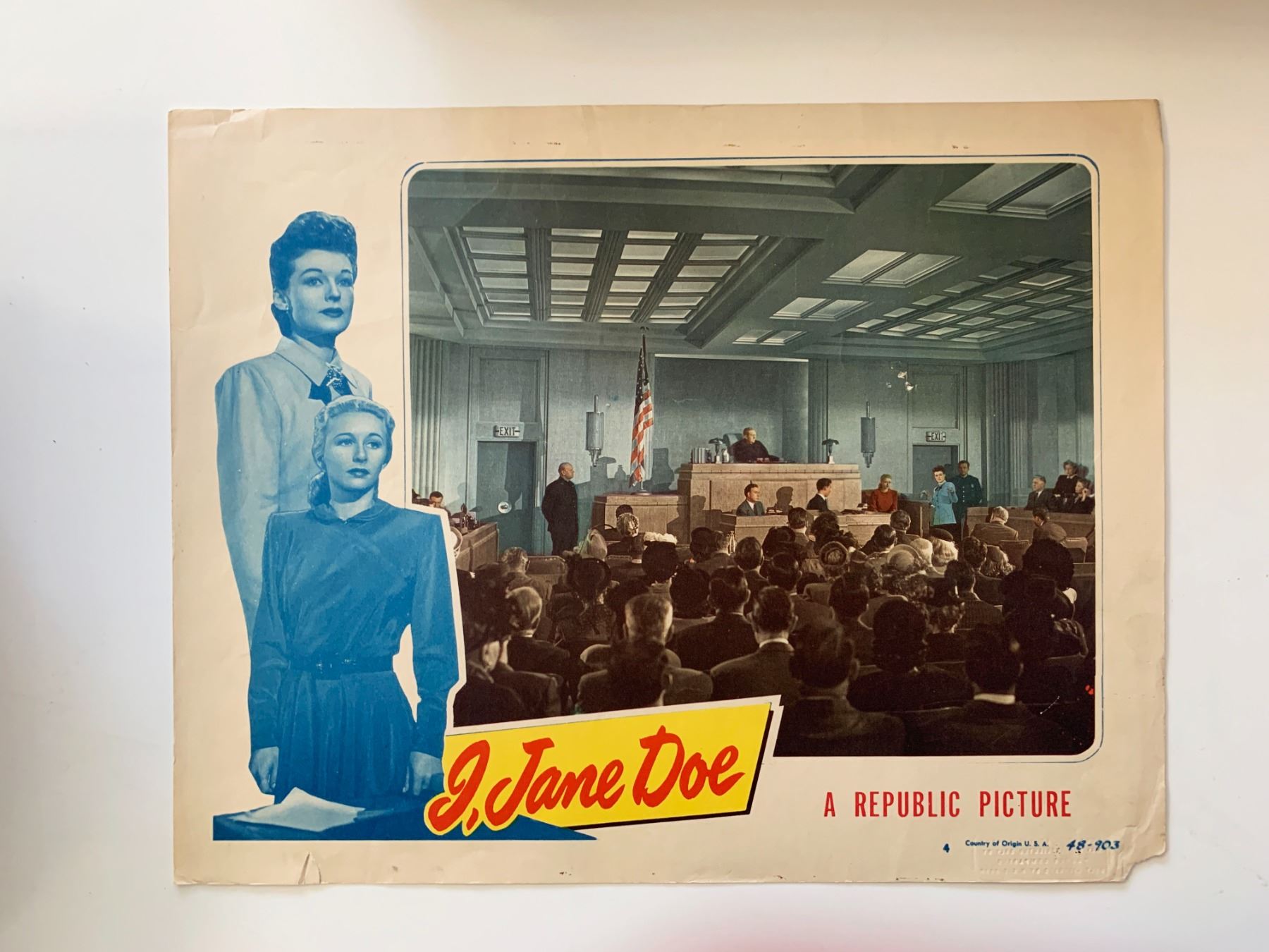 I, Jane Doe original 1948 vintage lobby card on heavy card stock. 11x14 inches