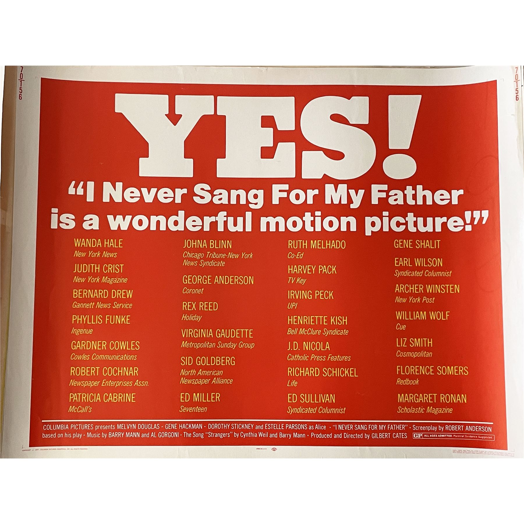 I Never Sang for My Father 1970 vintage movie poster. 22x28 inches