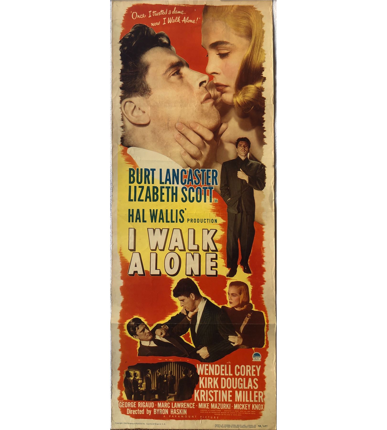 I Walk Alone 1948 insert card. 14X36
