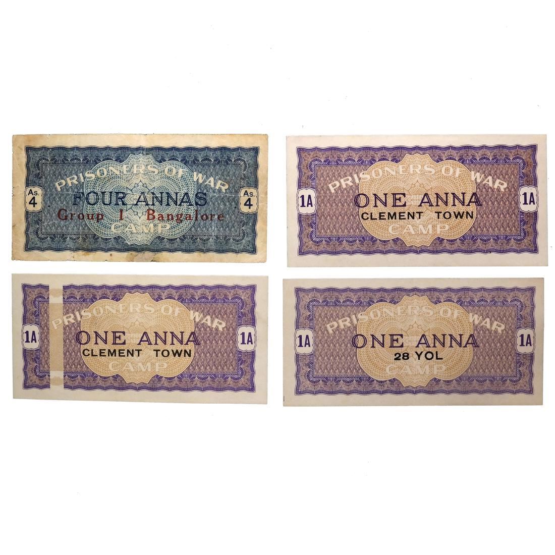 Includes a Group I Bangalore 4a in Fine condition, a Clement Town 1a Type I in Uncirculated condition, a Clement Town 1a Type II with backstamps in About Uncirculated condition, and a 28 Yol 1a in Extremely Fine condition, each measure approx 114 by 57mm. (Lyn Knight St. Louis auction of 20-23 November 2003 lots #824, 830-832)