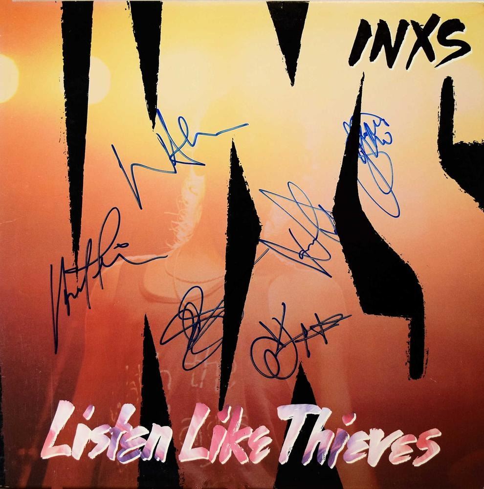 INXS 1984 Listen Like Thieves album. Signed: Michael Hutchence, Garry Gary Beers, Tim Farriss, Kirk Pengilly, Andrew Farriss & Jon Farriss.