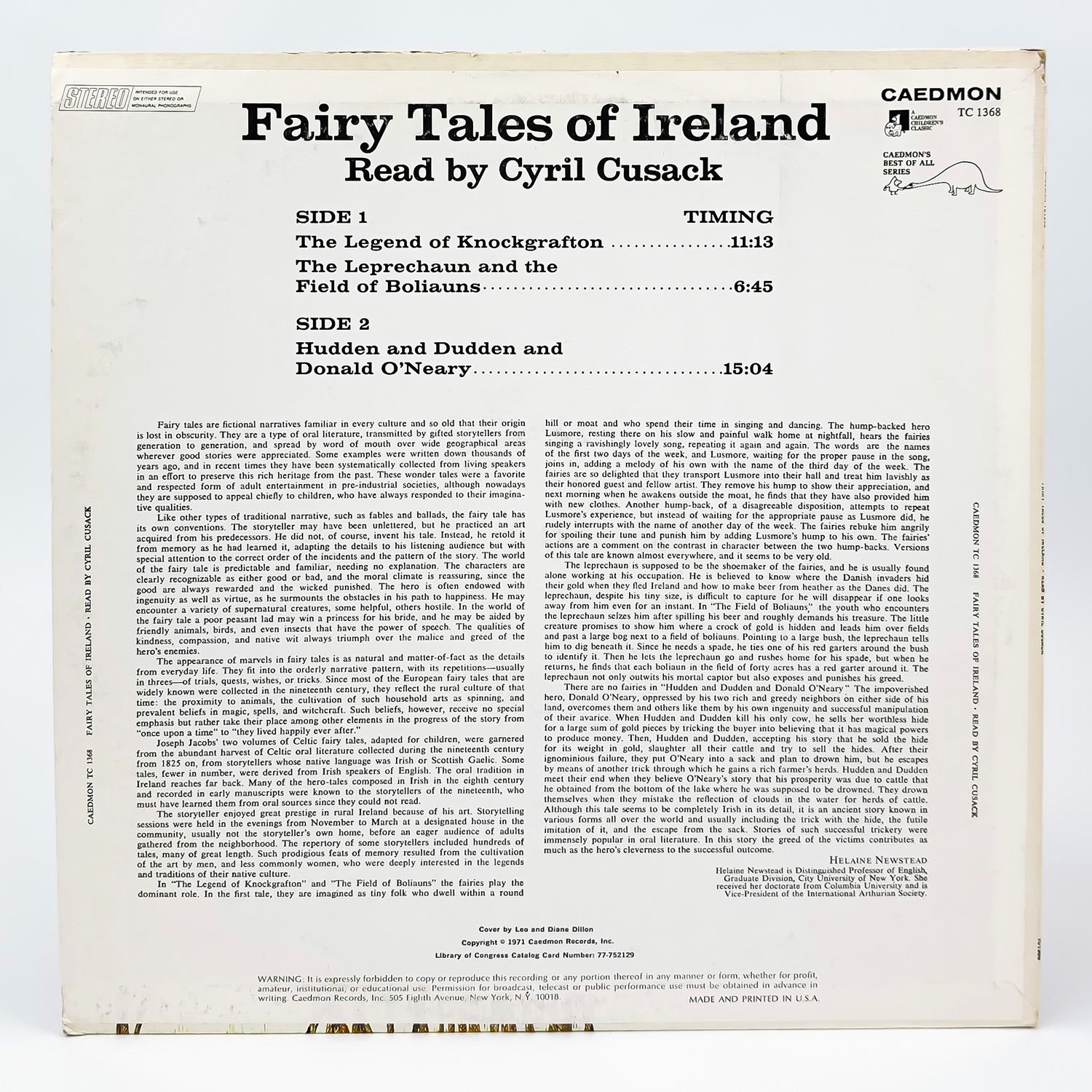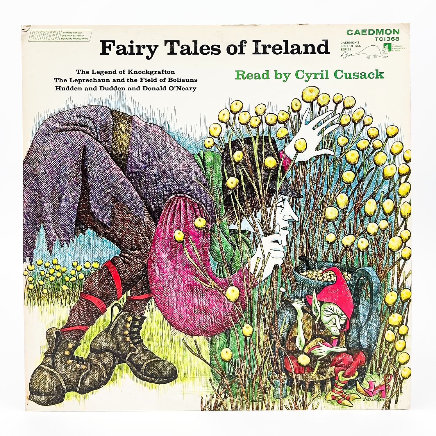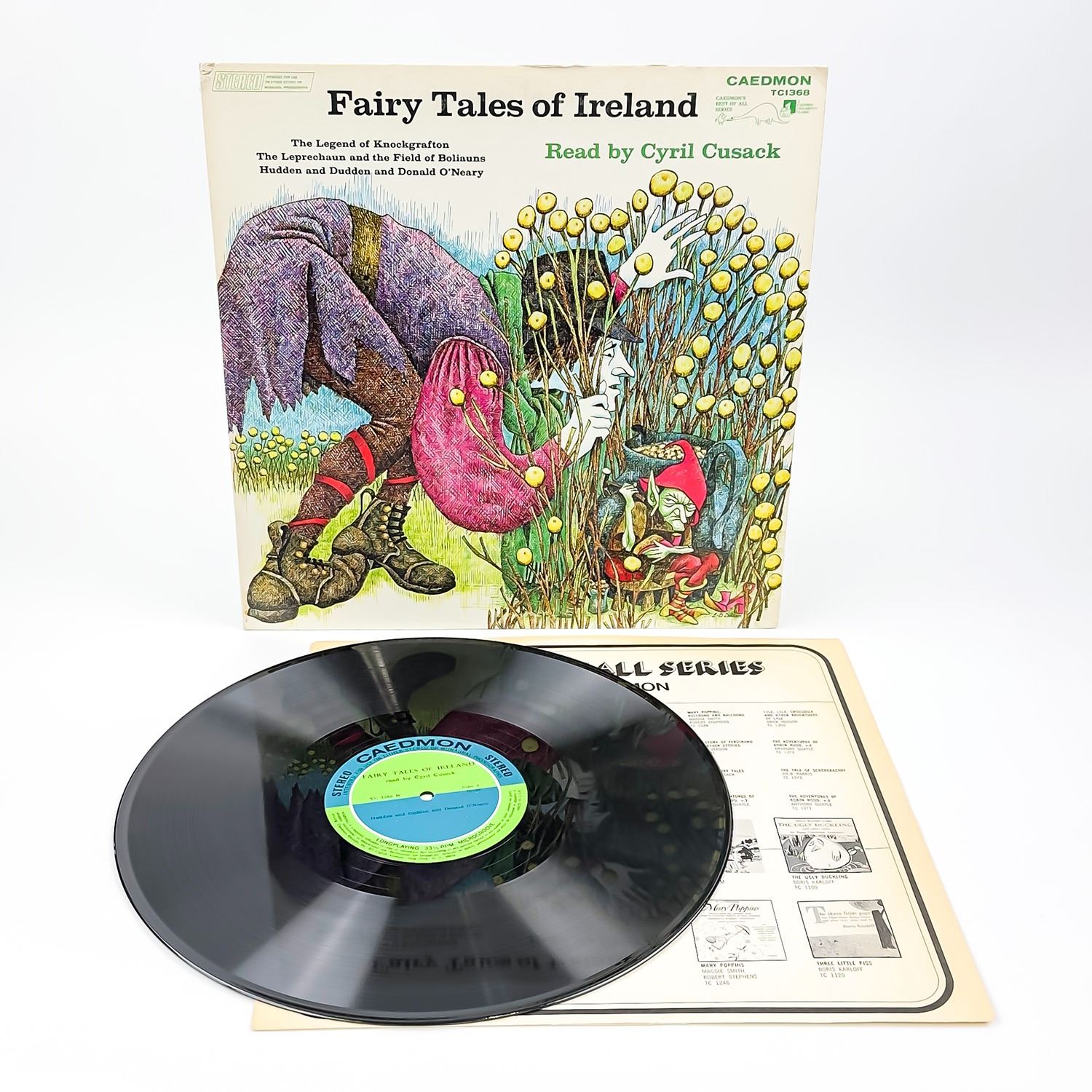 #9385 - VINYL LP RECORD ALBUM. NON-MUSIC, SPOKEN WORD, CHILDREN’S. THE LEGEND OF KNOCKGRAFTON, THE LEPRECHAUN AND THE FIELD OF BOLIAUNS, HUDDEN AND DUDDEN AND DONALD O’NEARY. CAEDMON RECORDS TC1368