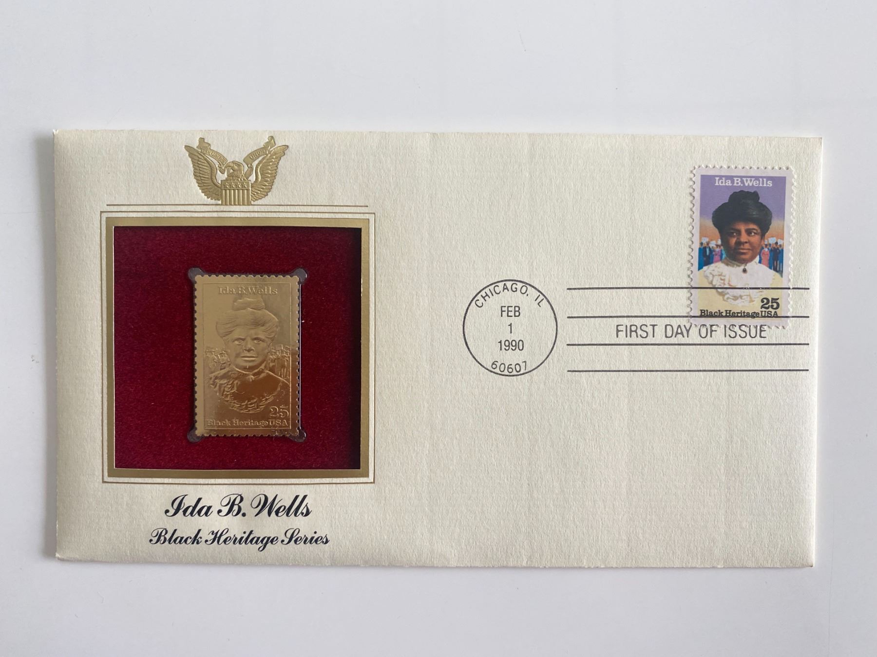 Ida B. Wells Black Heritage Series Gold Stamp Replica First Day Cover. Chicago, IL. Feb 1st 1990. 4x8 inches
