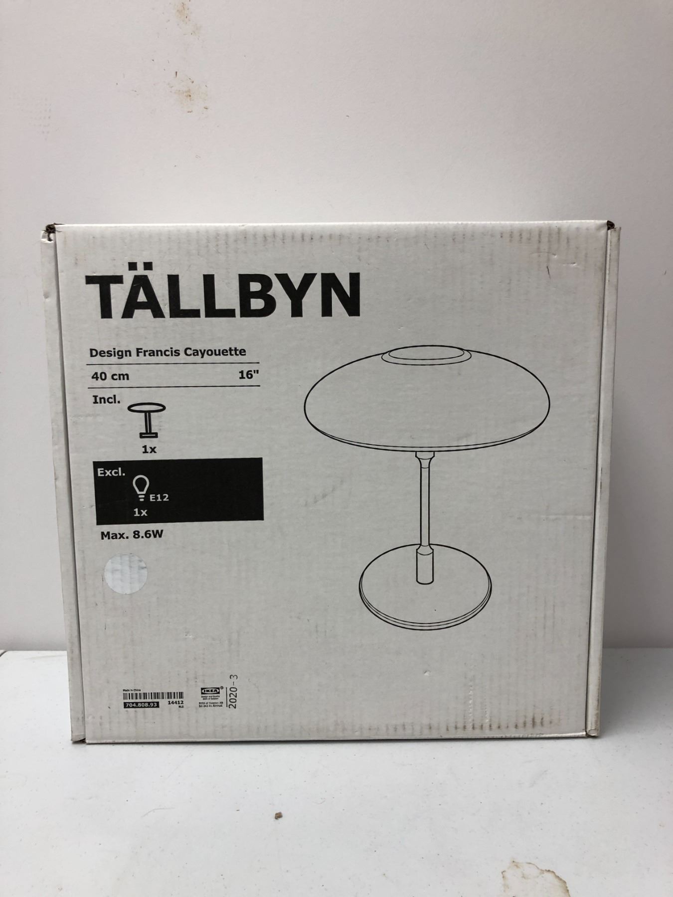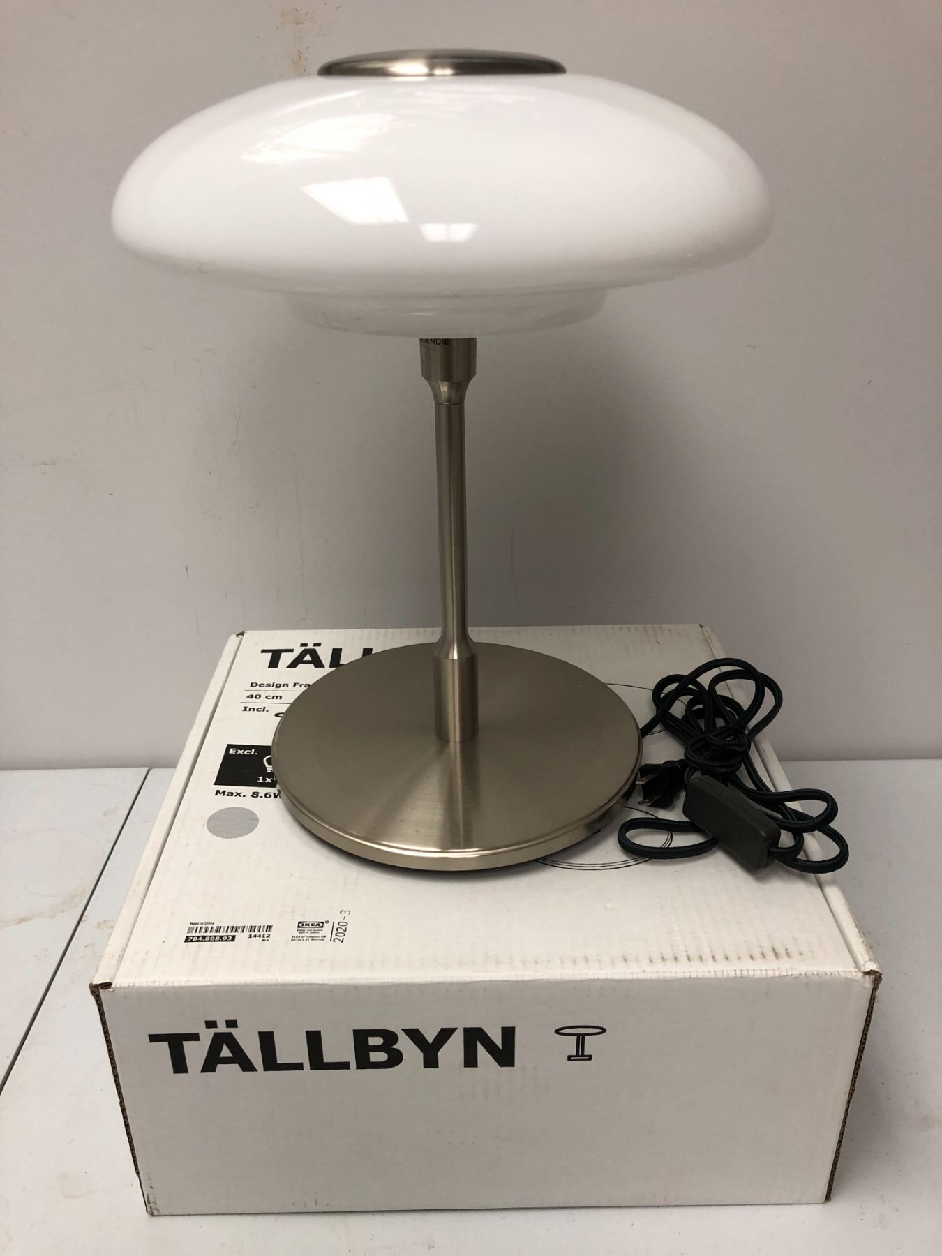Ikea Tallbyn Table Light - Stainless Post and Base with White Glass Light Cover -Approx. 16in tall