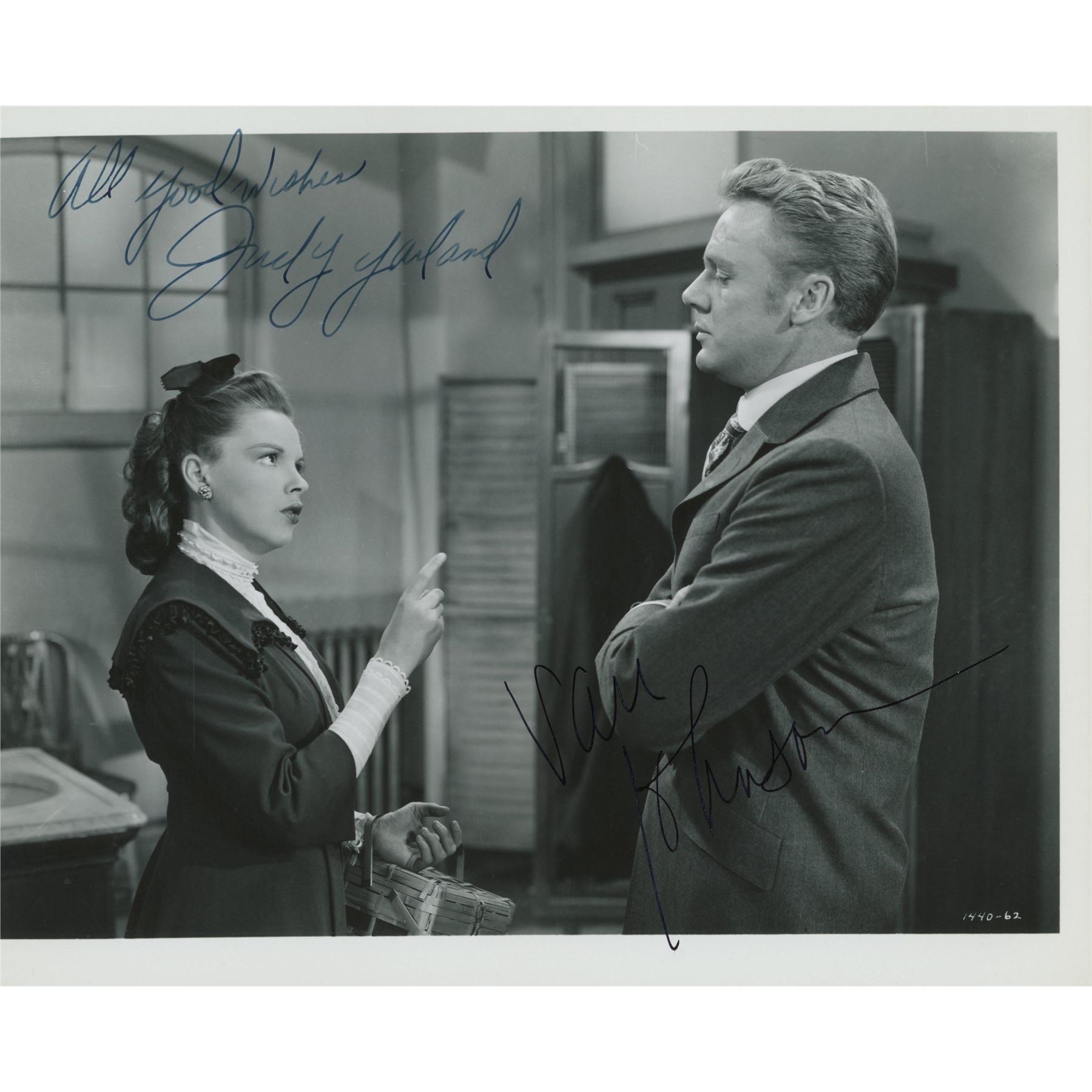 In the Good Old Summertime signed movie photo autographed by Judy Garland and Van Johnson. 8x10 inches