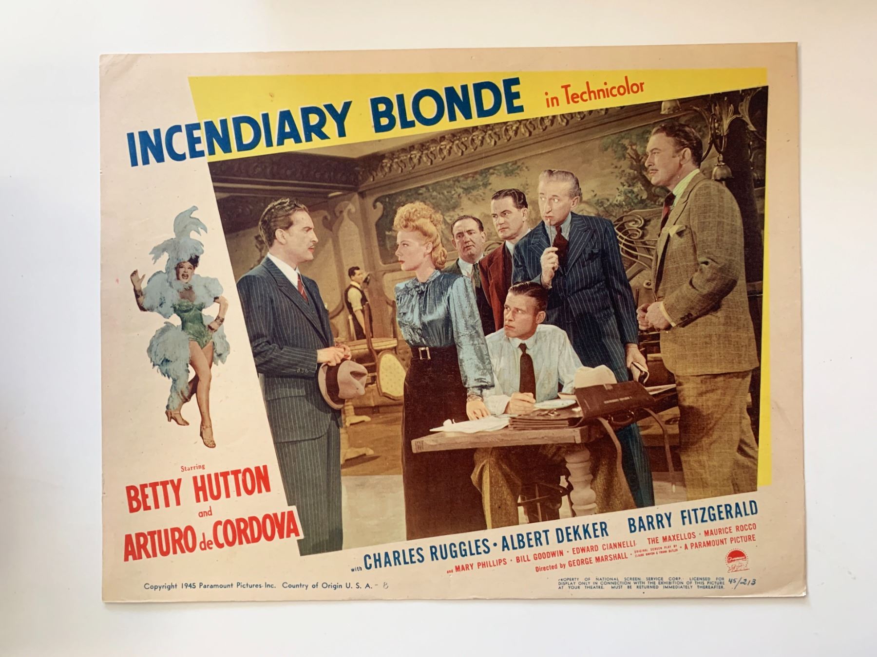 Incendiary Blonde original 1945 vintage lobby card on heavy card stock. 11x14 inches
