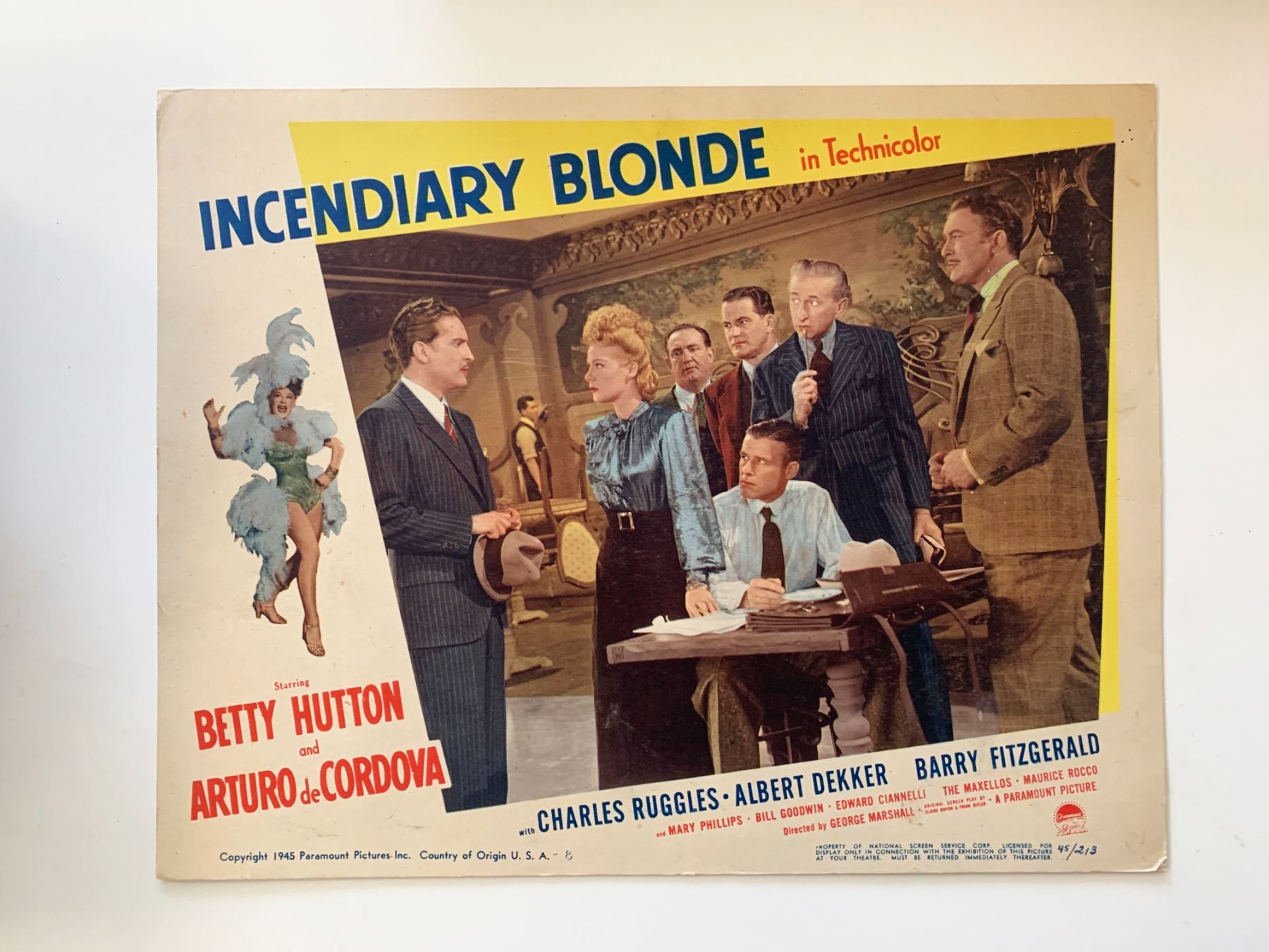 Incendiary Blonde original 1945 vintage lobby card on heavy card stock. 11x14 inches