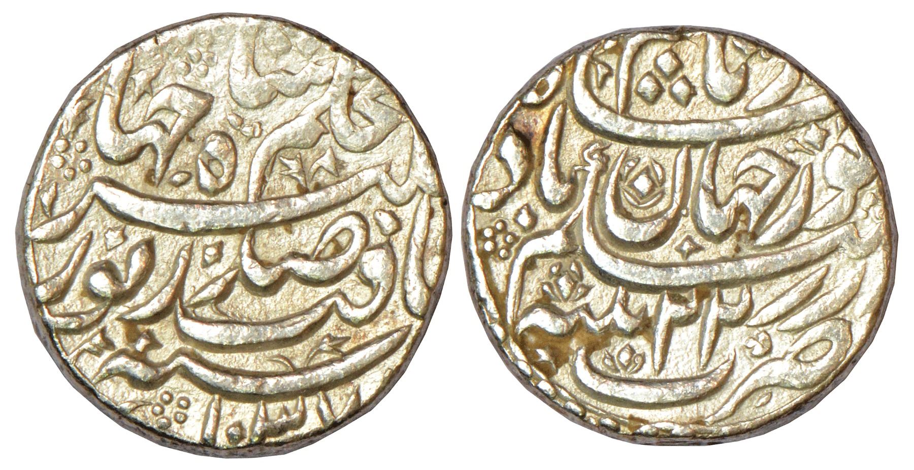 Jahangir with the name of Noor Jahan (1623-1627 AD), silver rupee, Patna mint, AH 1037/RY 22, KM 168.5, 11.42g.