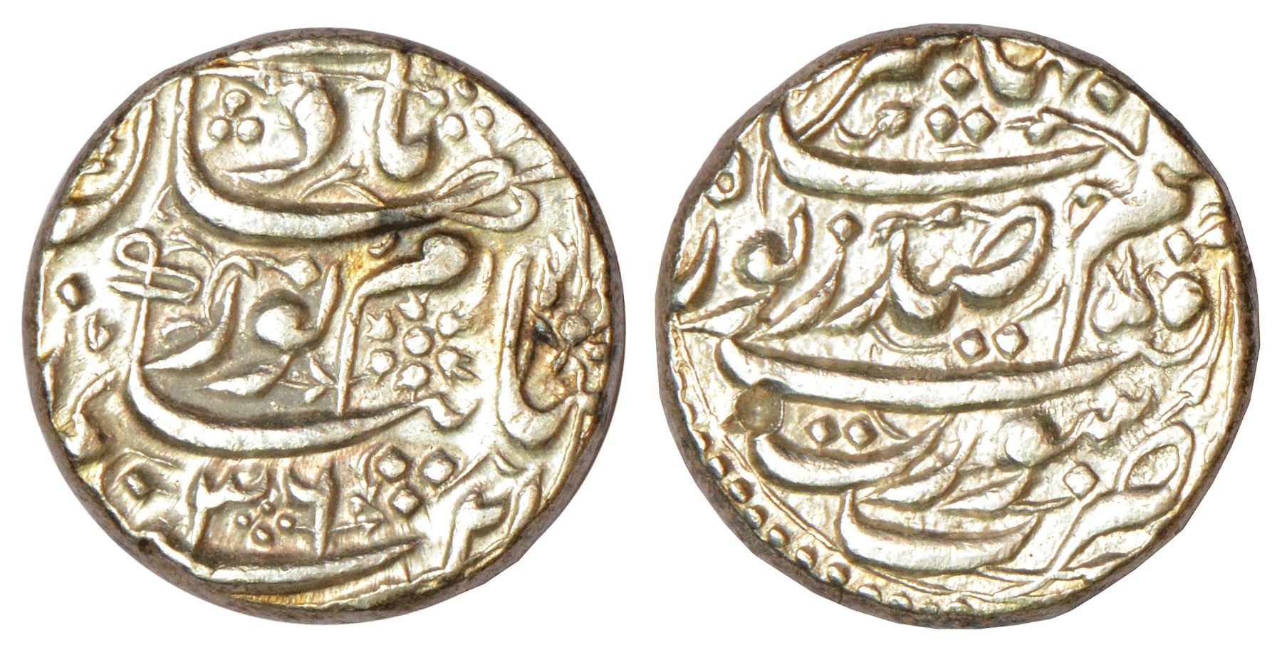 Jahangir with the name of Noor Jahan (1623-1627 AD), silver rupee, Surat mint, AH 1036/RY 21, KM 168.6, 11.44g.