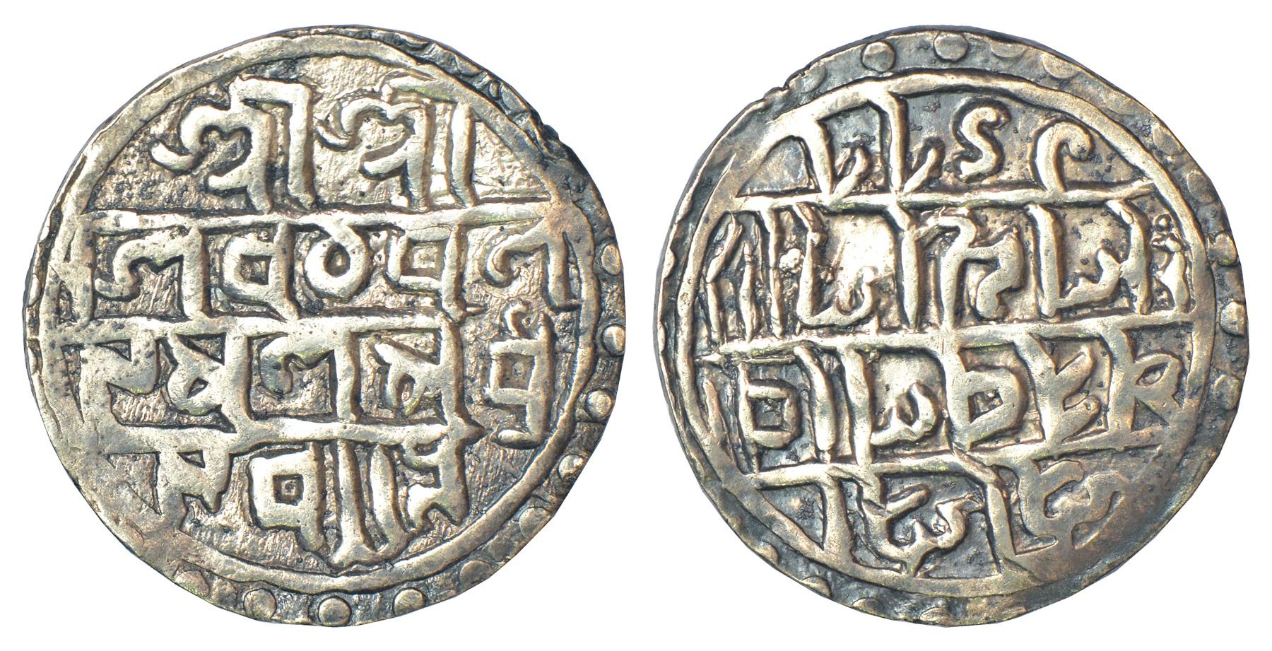 Cooch Behar, Nara Narayan (1555-1587 AD), silver tanka, saka 1477, Bose KK-A6.13-6.14, 10.07g. Obv: Legend Sri Sri/Siva Charana/Kamala madhu/Karasya in four lines. Rev: Legend Sri Sri/man Naranara/yanasya sake/1477, in four lines, both sides legend within circle and dotted border.