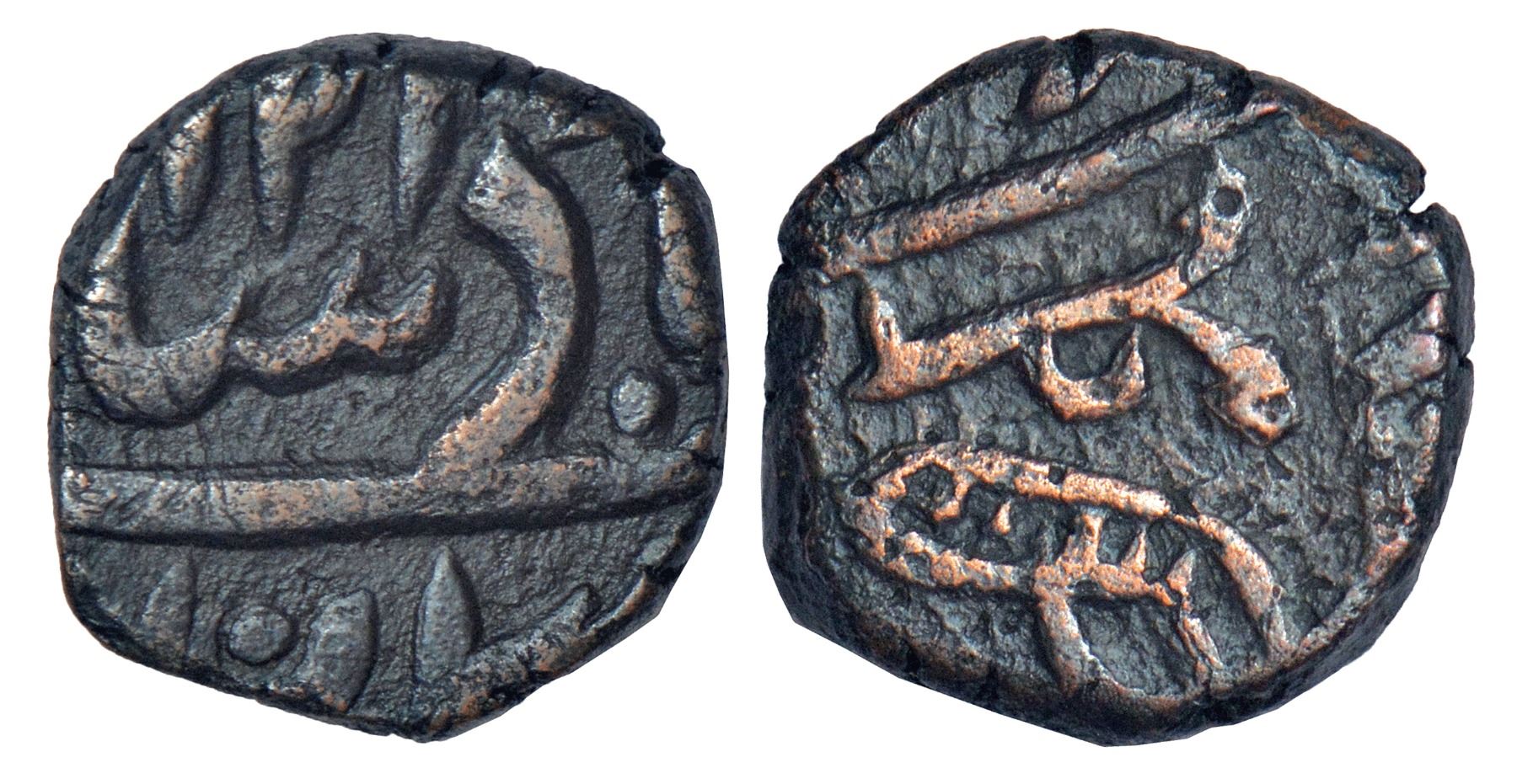 Maratha Confederacy, copper paisa, Akbarabad mint, in the name of Shah Alam II, AH 121x, Pistol and fish mintmark on reverse, M&W T5, 5.13g.