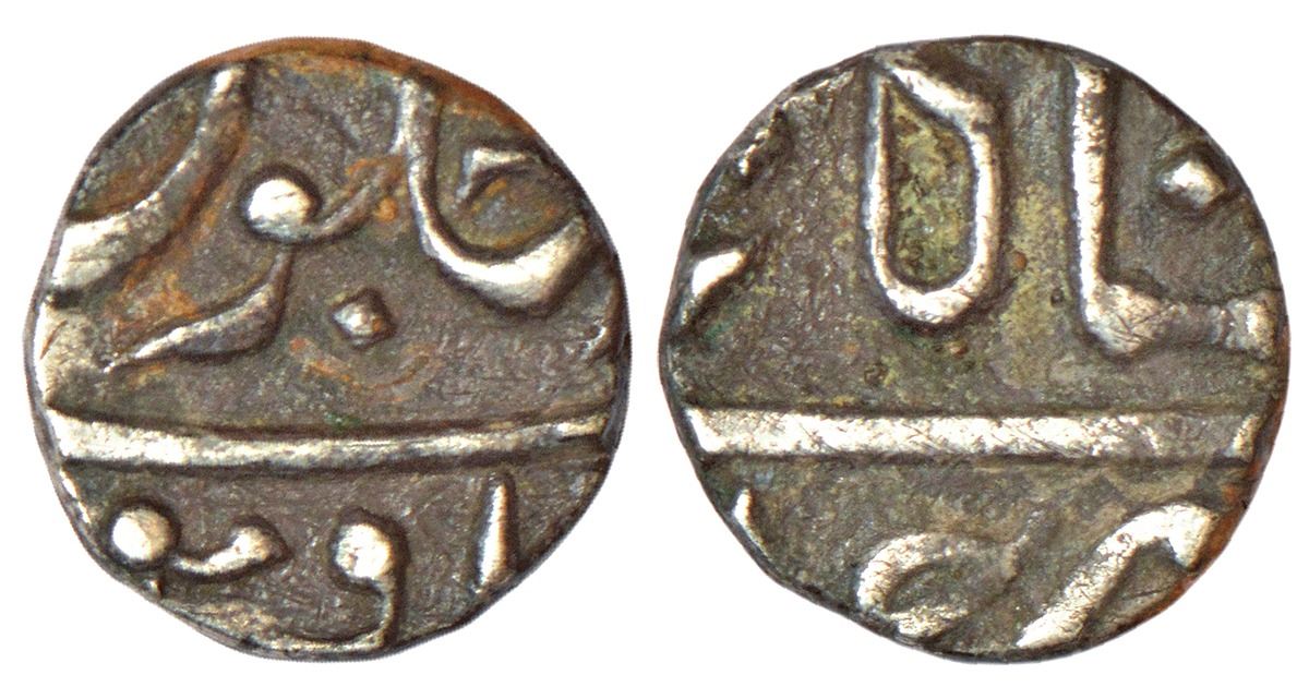 Maratha Confederacy, silver ¼ rupee, Muhiabad urf Poona mint, in the name of Shah Ali Gauhar, the pre accession name of Shah Alam II, M&W T4, 2.71g.