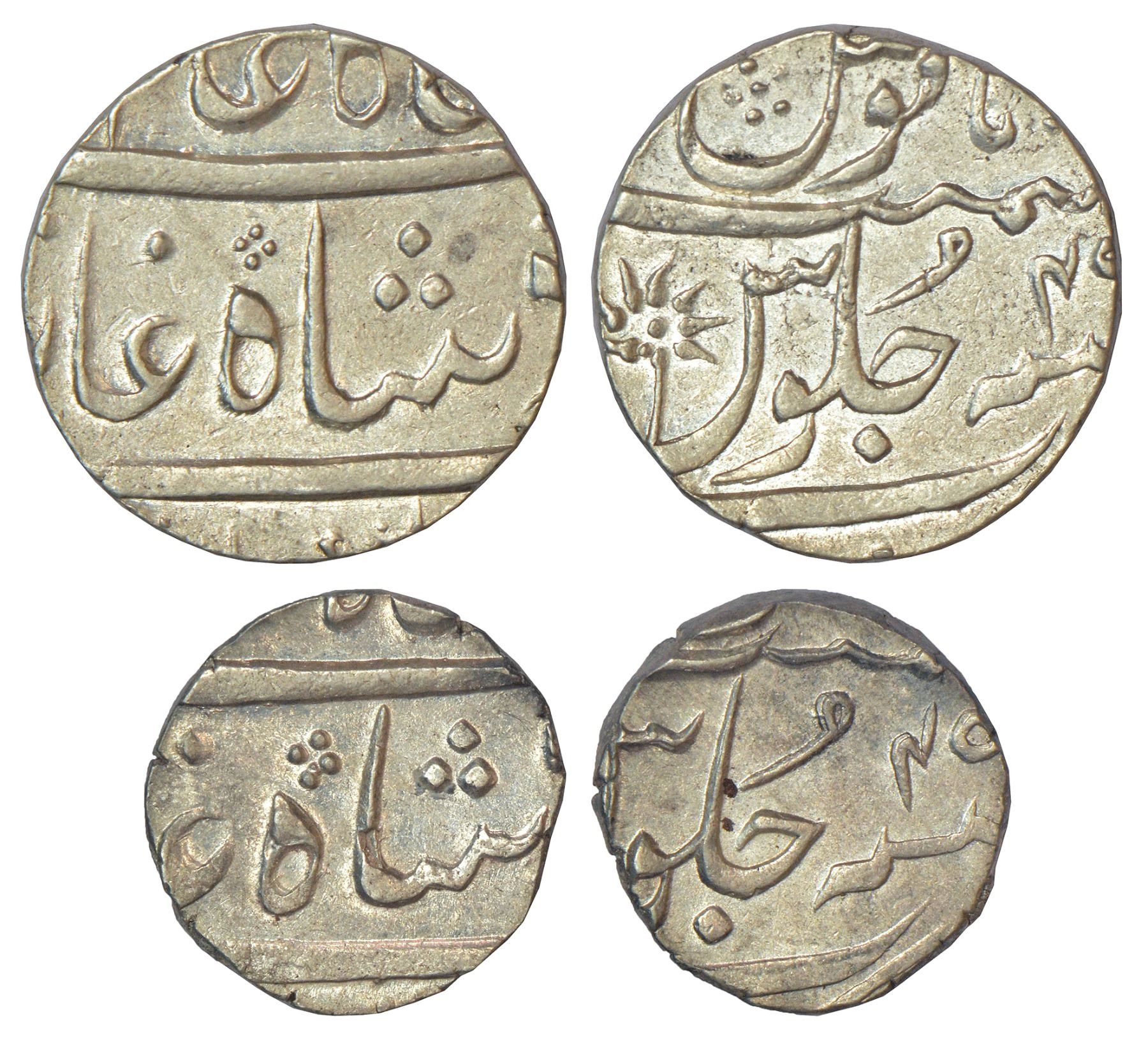 Nawab of Surat, silver rupee and ½ rupee, Surat mint (off flan), in the name of Shah Alam II, both coin RY 45, 11.53g and 5.77g. (2 coins)