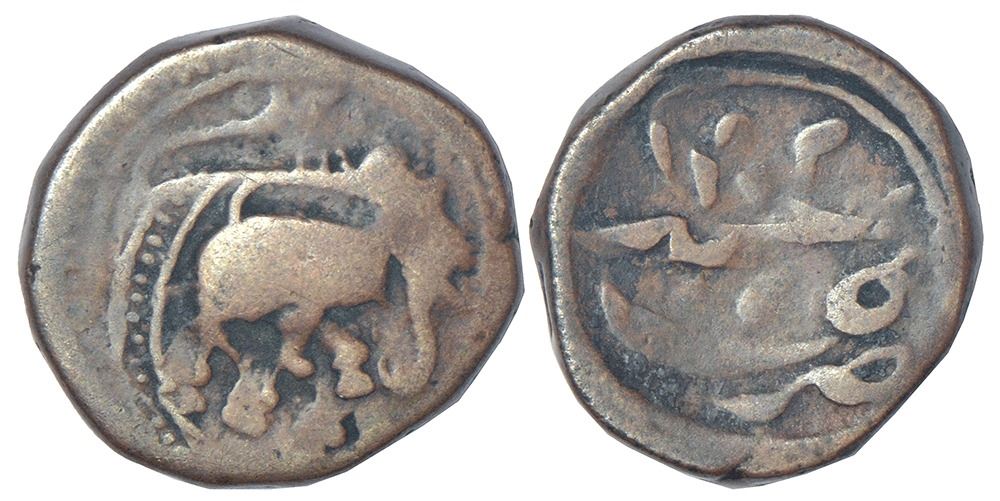 Nawabs of Cuddappah as vassals of Tipu Sultan of Mysore (1782-1799 AD) - anonymous 'elephant' type copper paisa, Kadiri mint, AH 1202, 6.82g. Obv: Elephant walking to right. Rev: Farsi inscription Zarb Kadiri 1202.