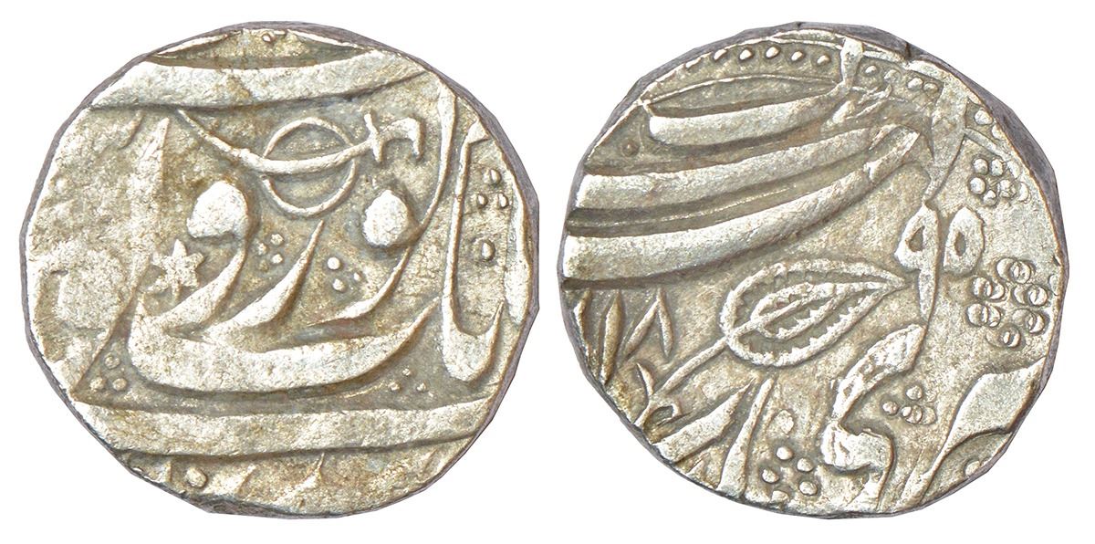 Sikh Empire, Mihan Singh Kumedan as governor (1834-1841 AD), silver rupee, Kashmir mint, 'Gobind Shahi' couplet, VS 1895, sword mint-mark on obverse, Herrli 06.46.04, 10.79g.
