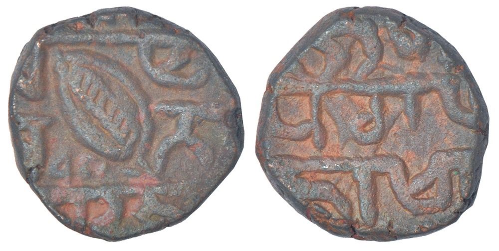 Sikh Empire - copper paisa, Dera (Dera Ghazi Khan) mint, VS1895, Herrli 05.10.11 (year not listed), 8.99g. Obv: Legend in Gurumukhi script Akal Sahai Gur 95 Nanak ji; leaf in centre. Rev: Legend in Gurumukhi script Jarab Dera Ghaji Khan, with VS year on top.