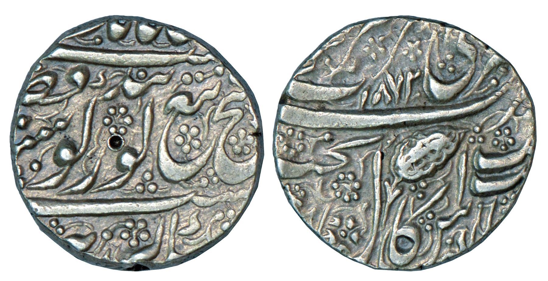 Sikh Empire, silver rupee, 11.13g, Amritsar mint, 'Nanak Shahi' couplet, VS 1872, 'Aarsi like symbol within laam of Akaal'. Unlisted to G.Singh.
